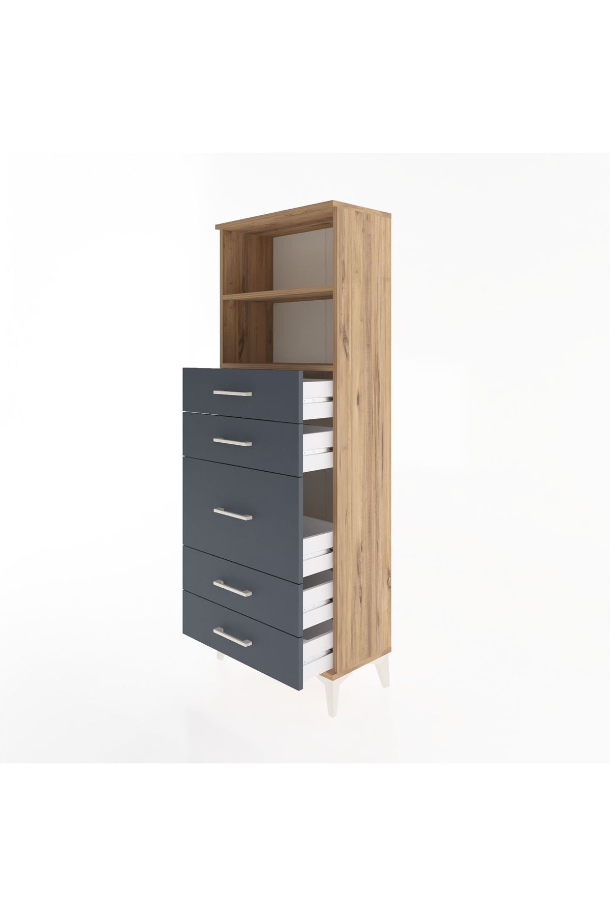 Arges Dolap 2 Raflı 5 Çekmeceli 60x30x163 Çam-Antrasit