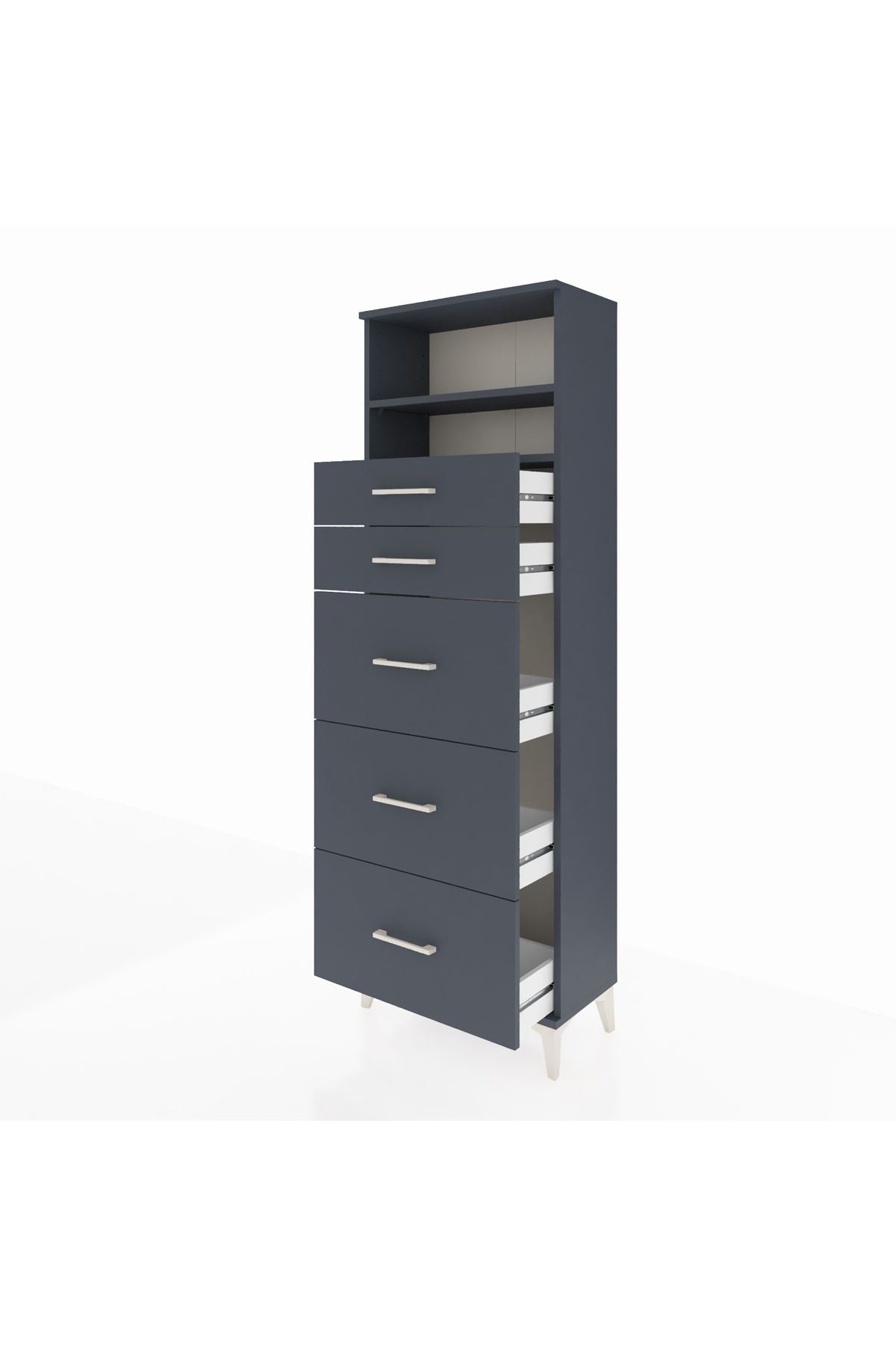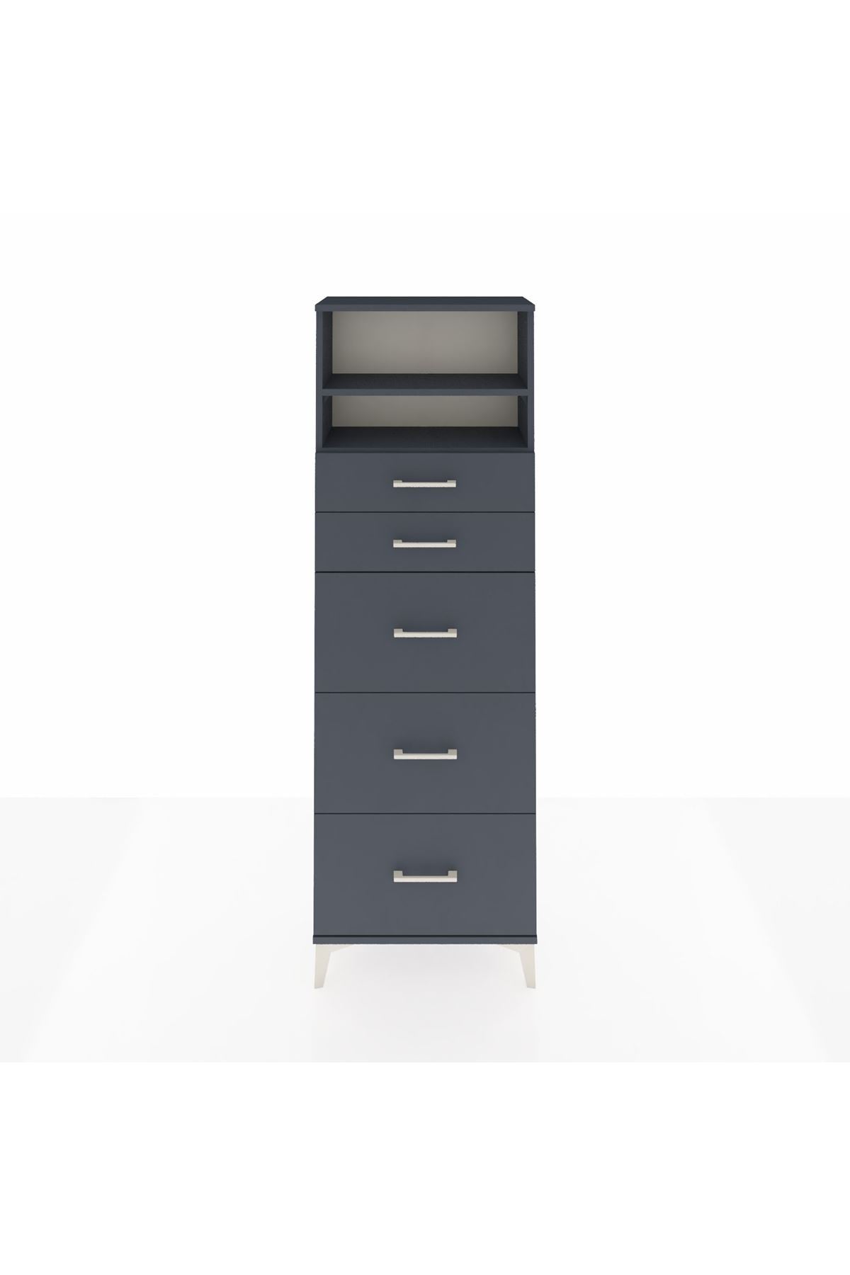Arges Dolap 2 Raflı 5 Çekmeceli 60x30x182 Antrasit-Antrasit