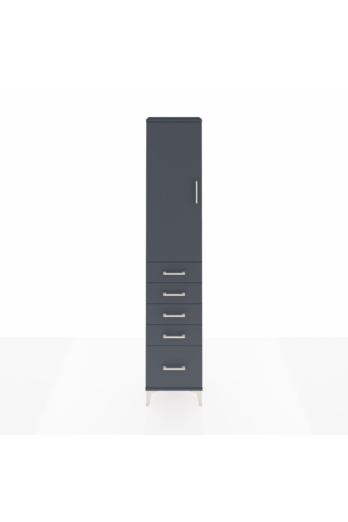 Arges Dolap 2 Raflı 5 Çekmeceli Tek Askılı 44x30x221 Antrasit-Antrasit