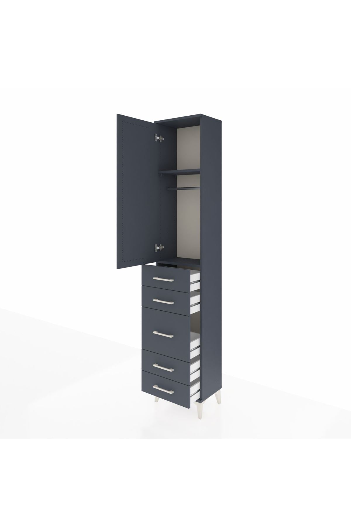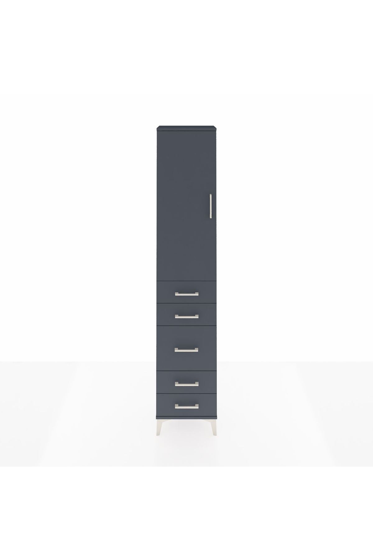 Arges Dolap 2 Raflı 5 Çekmeceli Tek Askılı 44x30x221 Antrasit-Antrasit