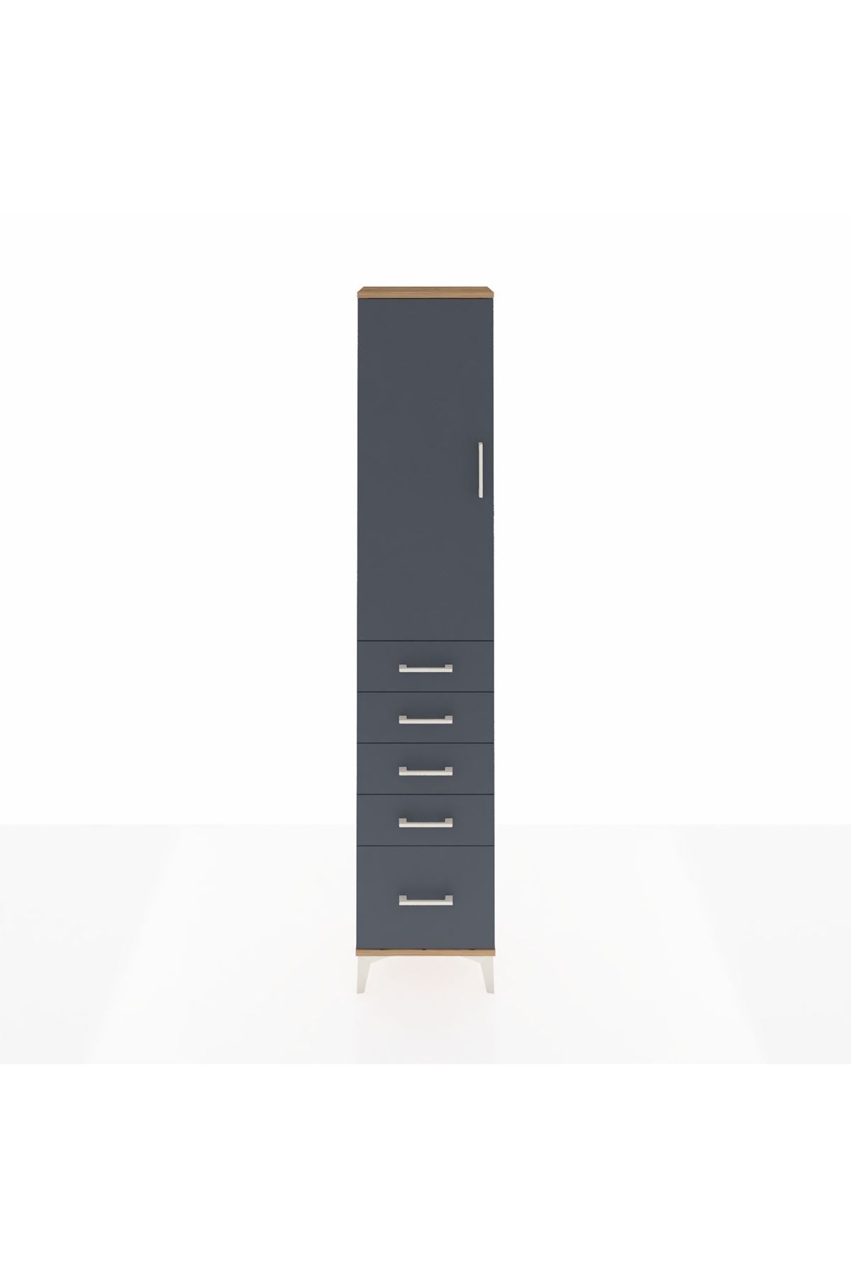 Arges Dolap 2 Raflı 5 Çekmeceli Tek Askılı 44x30x221 Çam-Antrasit