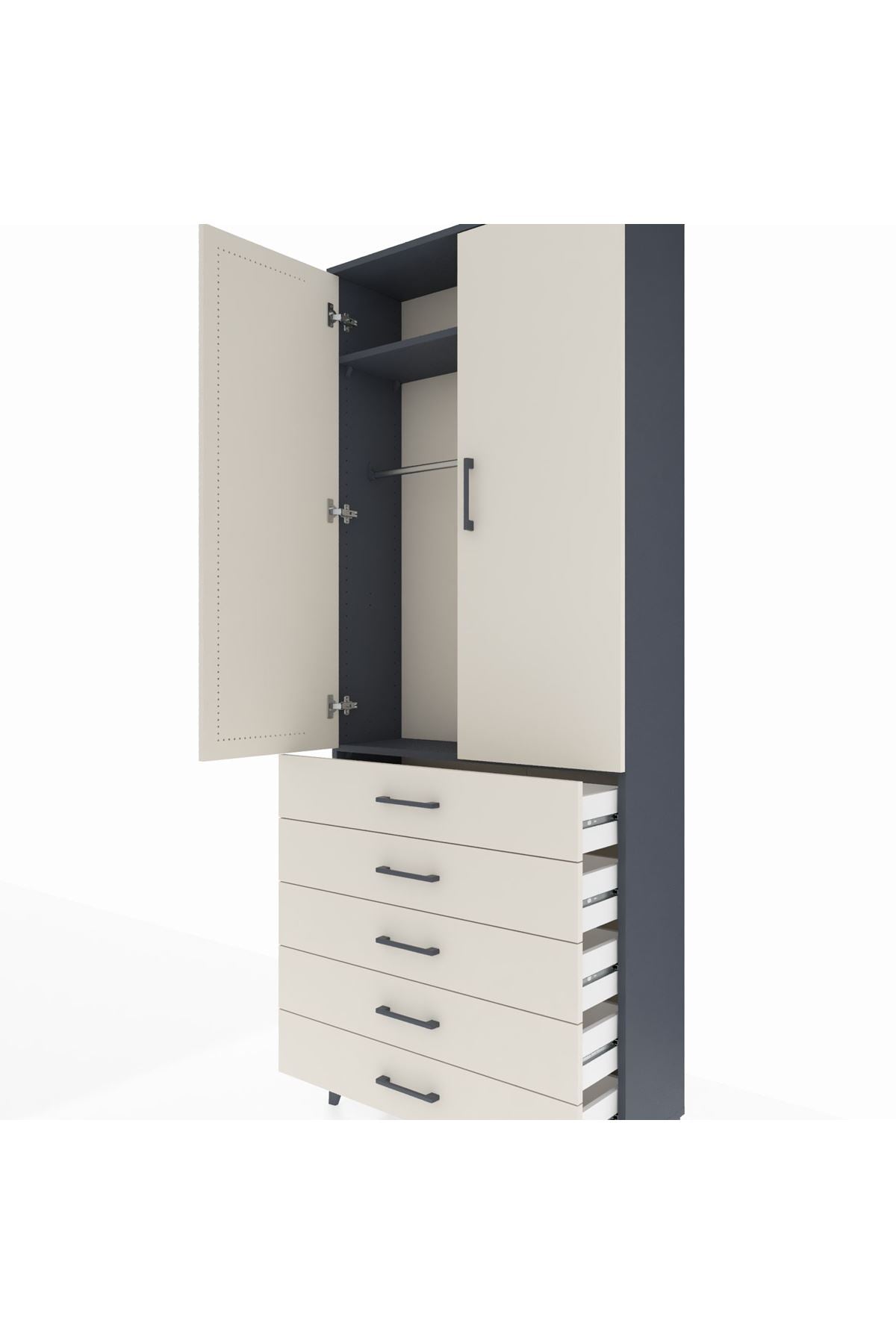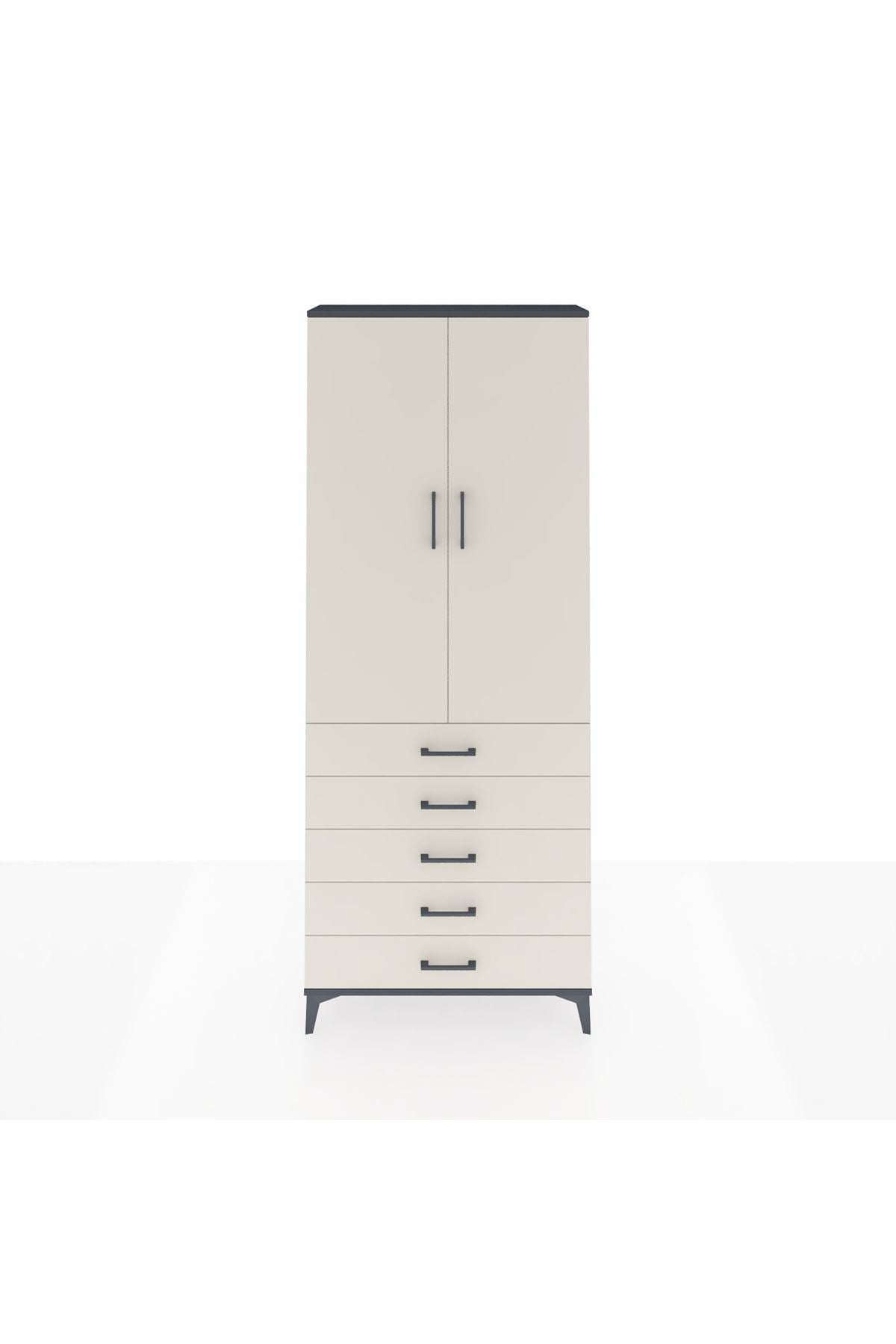 Arges Dolap 2 Raflı 5 Çekmeceli Tek Askılı 88x30x221 Antrasit-Aytaşı
