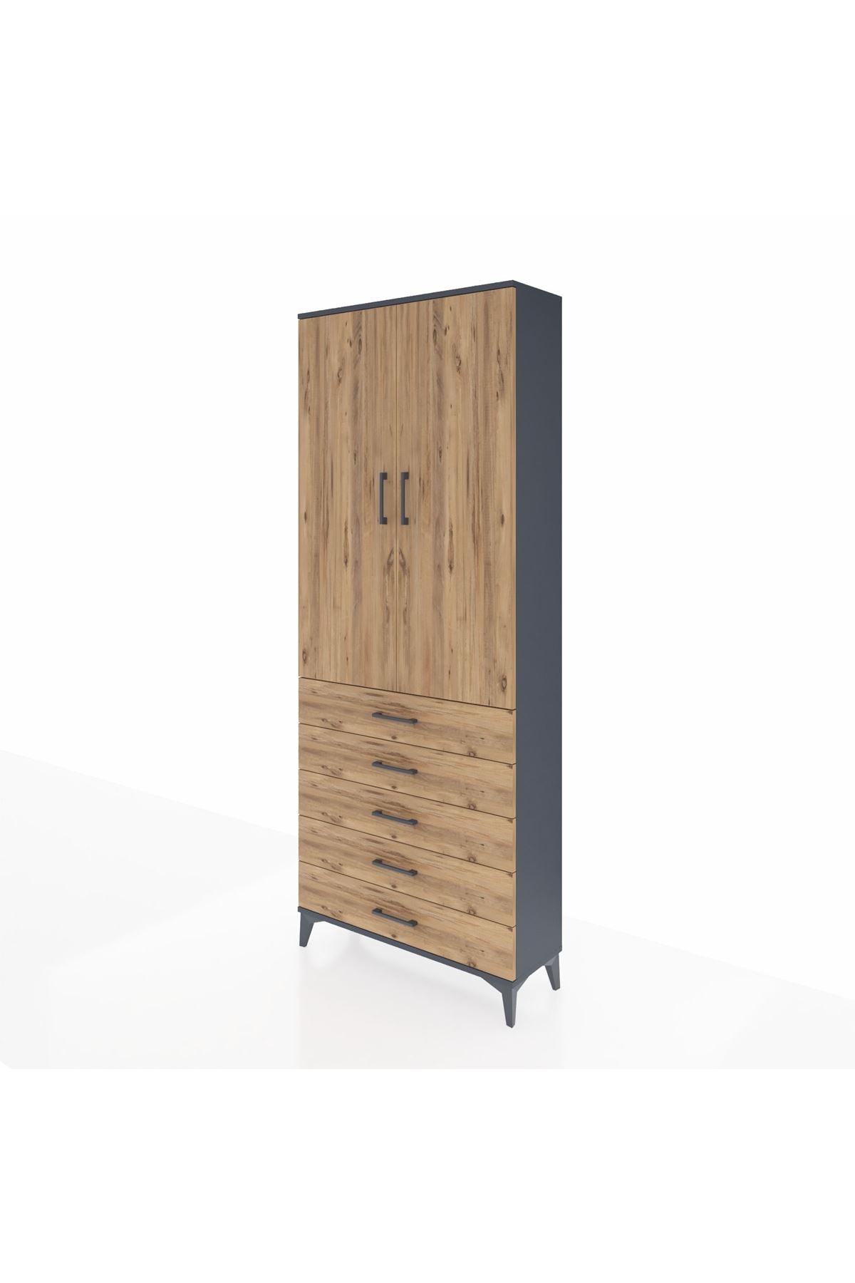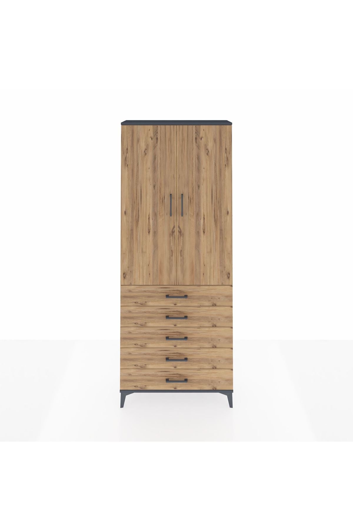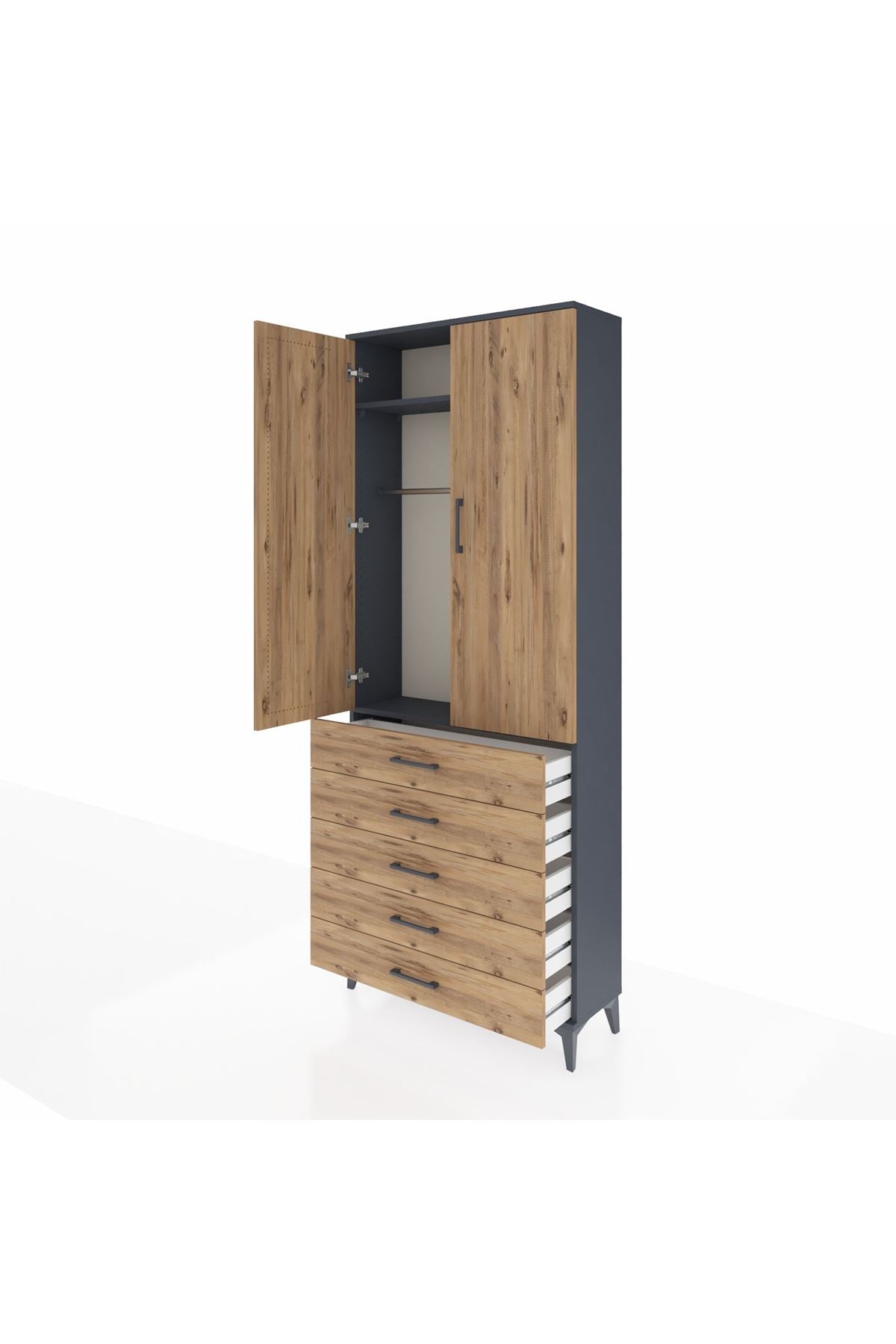 Arges Dolap 2 Raflı 5 Çekmeceli Tek Askılı 88x30x221 Antrasit-Çam