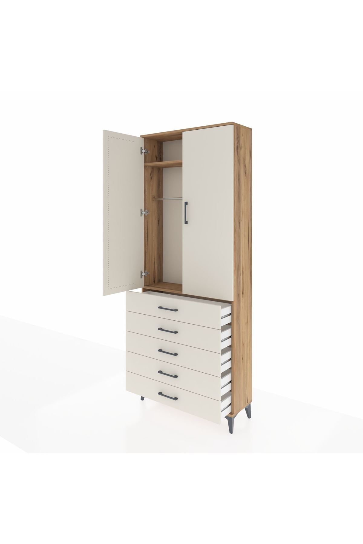 Arges Dolap 2 Raflı 5 Çekmeceli Tek Askılı 88x30x221 Çam-Aytaşı