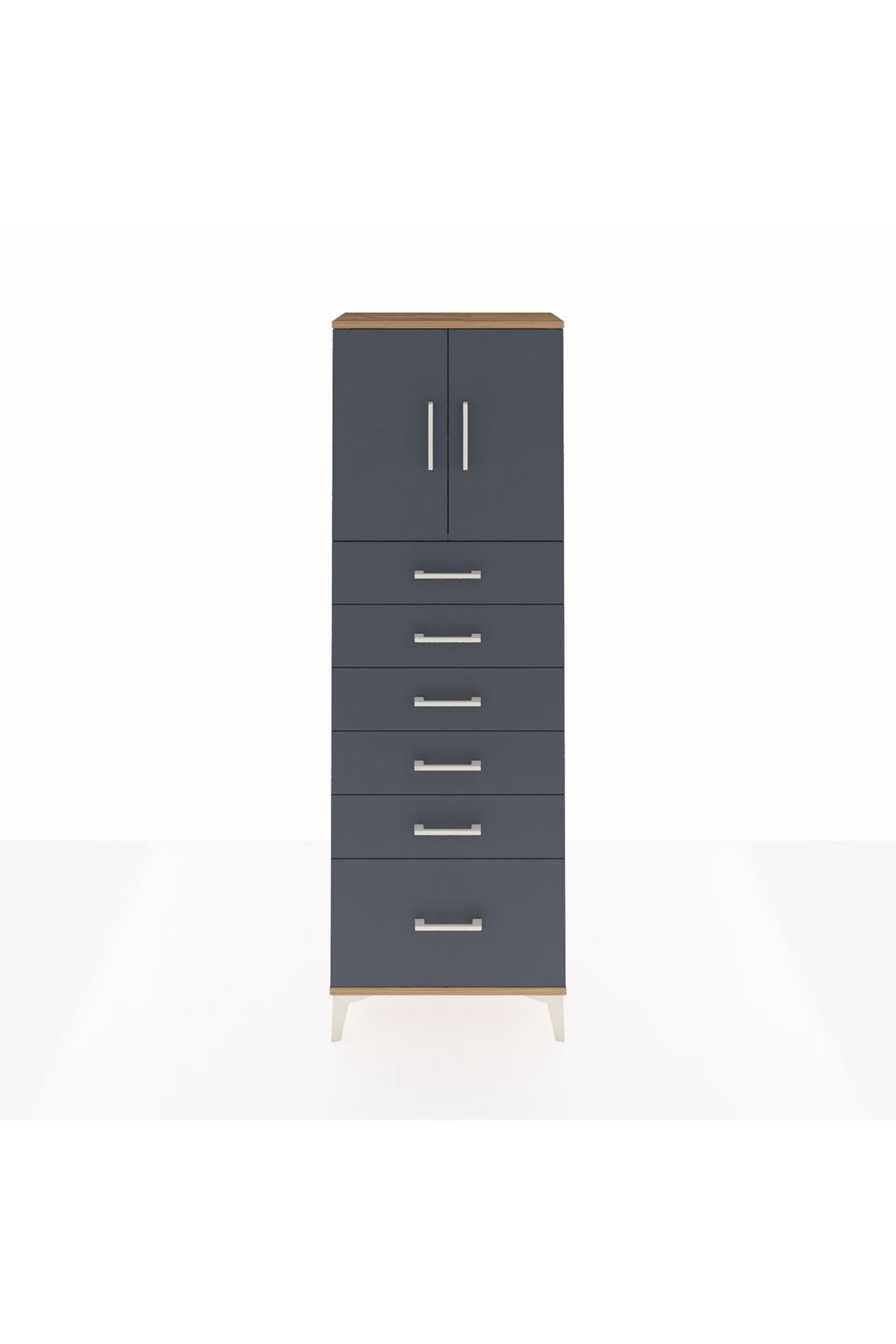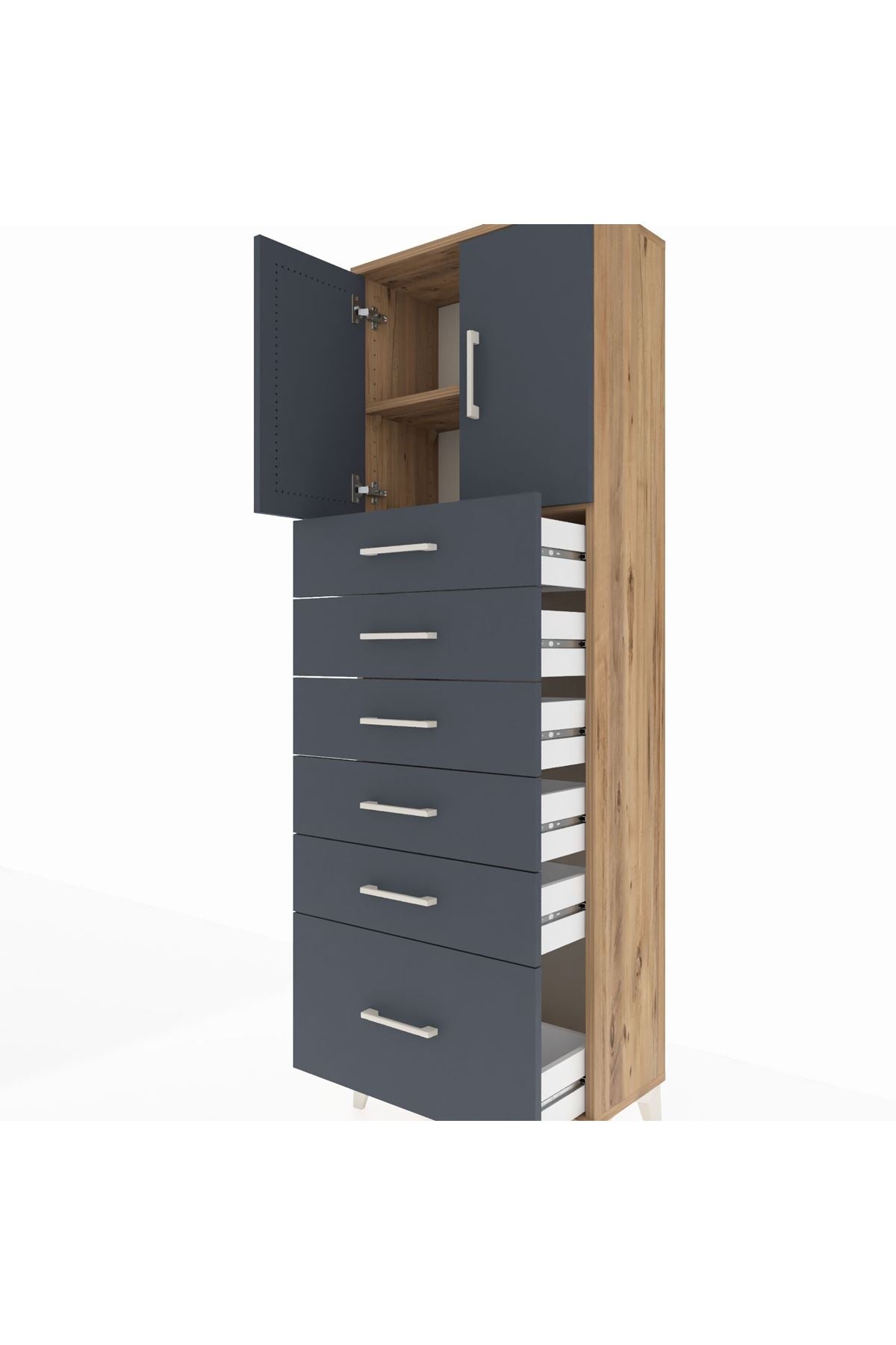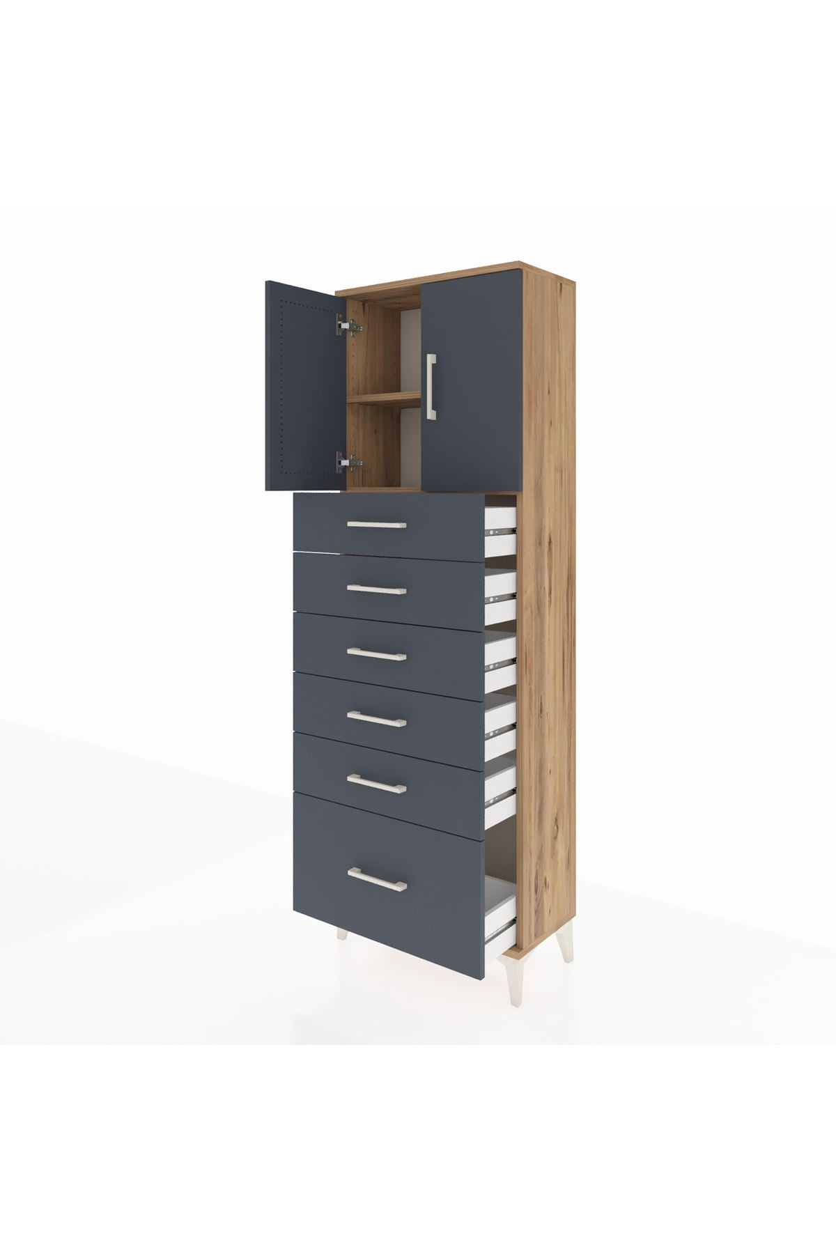 Arges Dolap 2 Raflı 6 Çekmeceli 2 Kapaklı 60x30x182 Çam-Antrasit