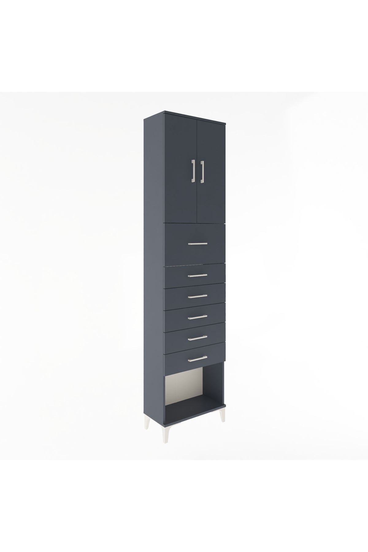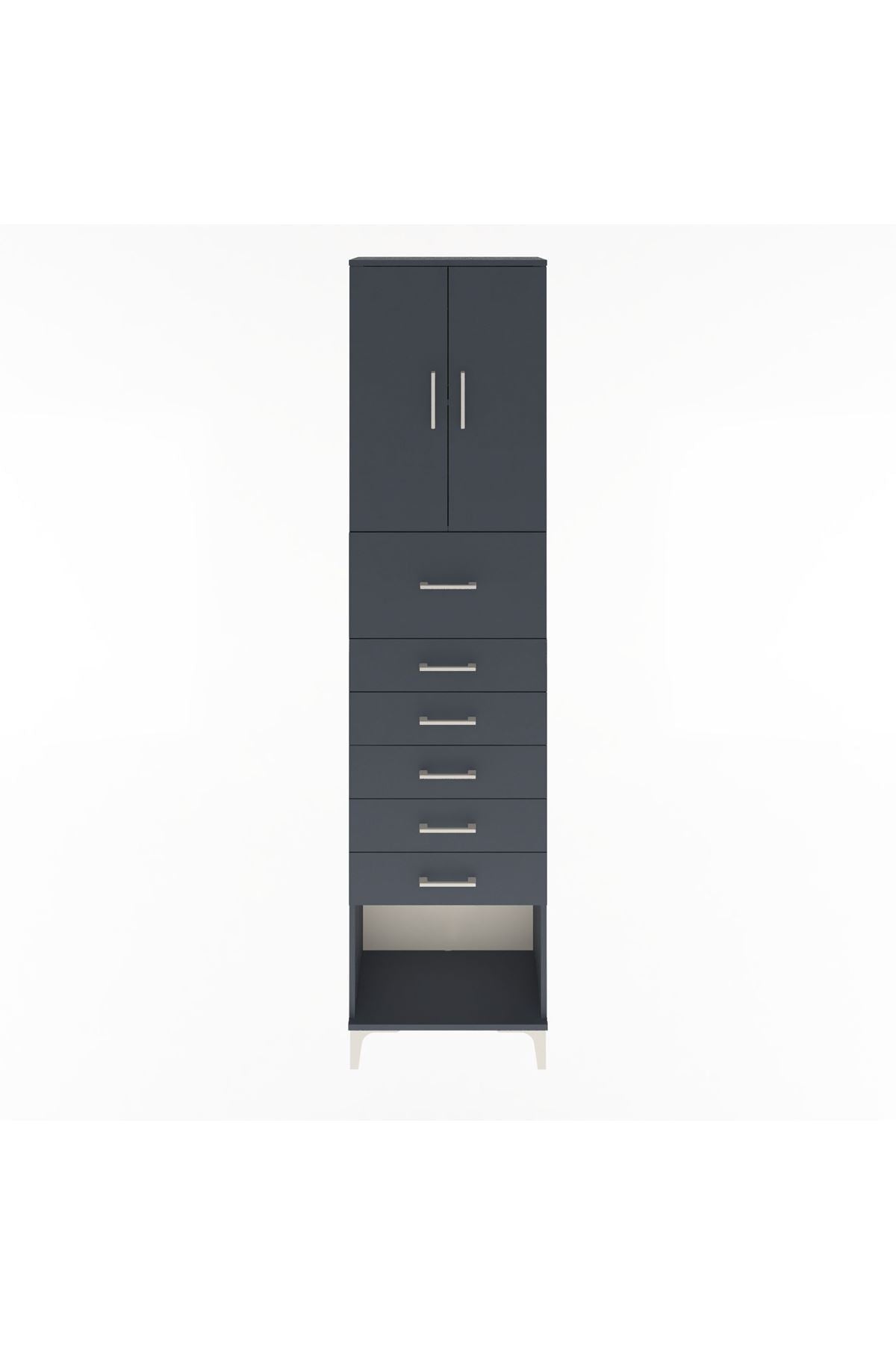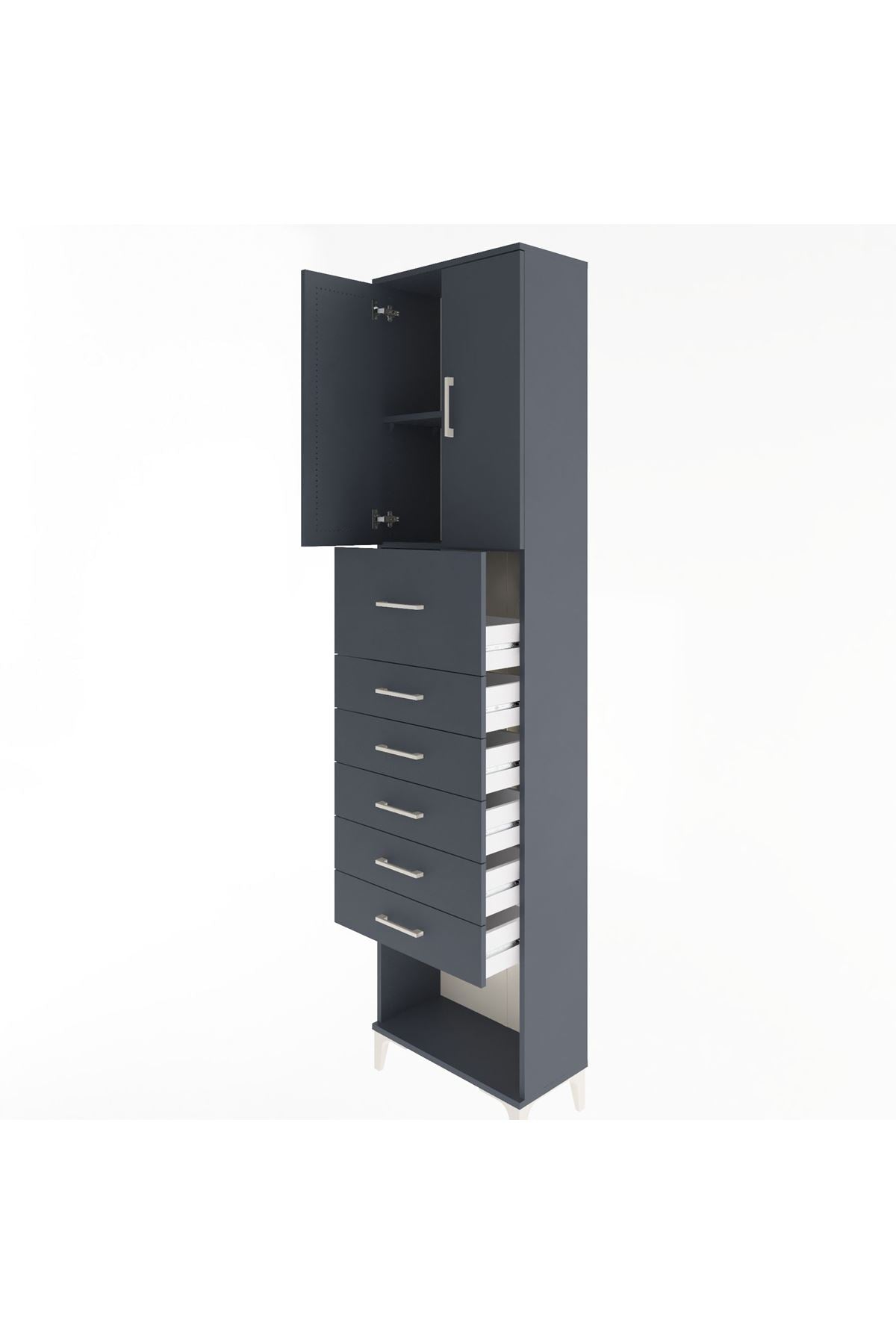 Arges Dolap 2 Raflı 6 Çekmeceli 2 Kapaklı 60x30x243 Antrasit-Antrasit