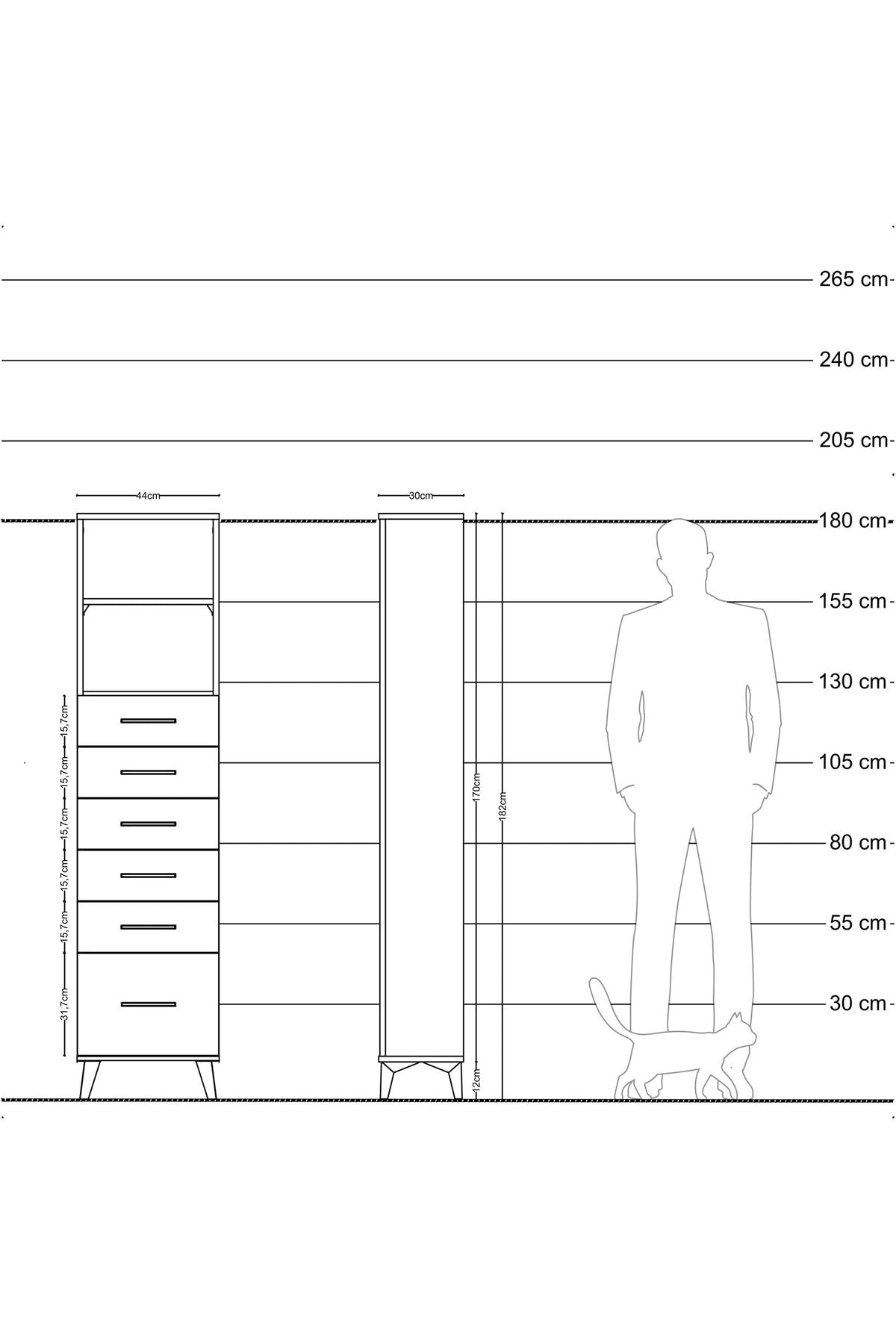 Arges Dolap 2 Raflı 6 Çekmeceli 44x30x182 Antrasit-Aytaşı
