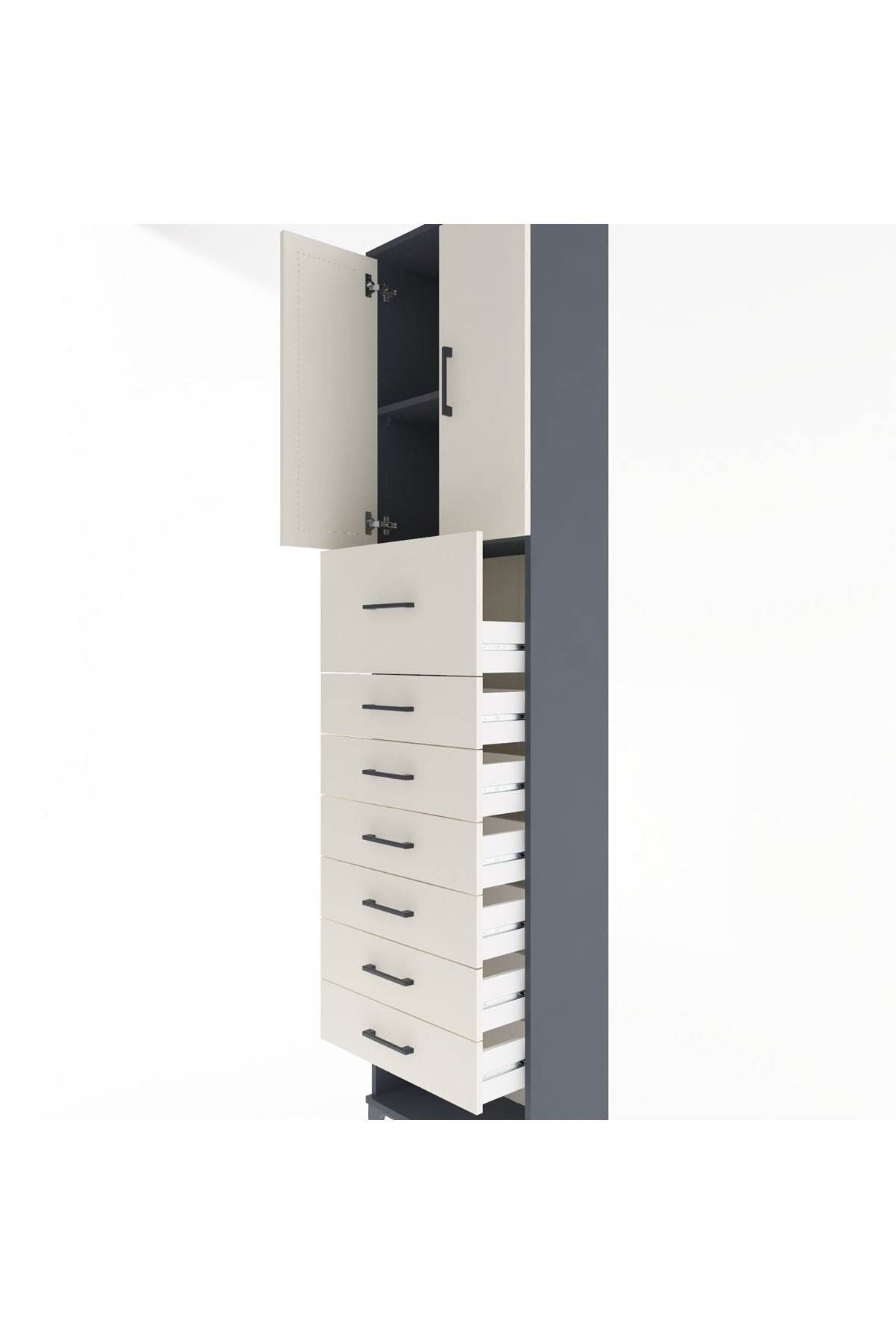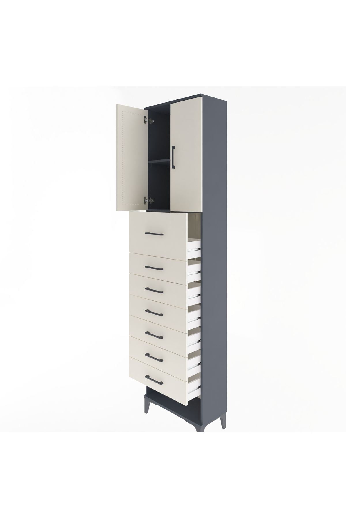 Arges Dolap 2 Raflı 7 Çekmeceli 2 Kapaklı 60x30x243 Antrasit-Aytaşı