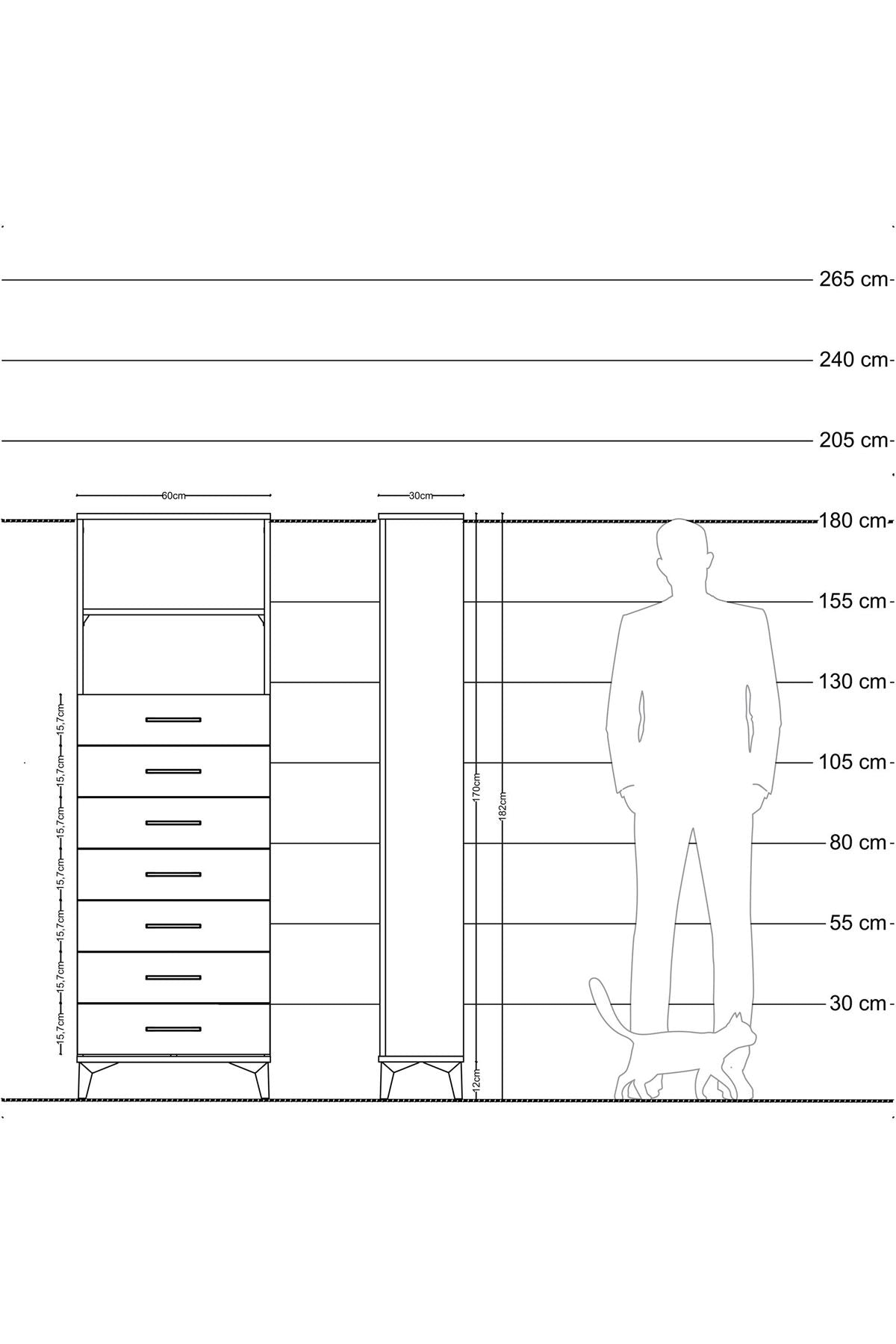 Arges Dolap 2 Raflı 7 Çekmeceli 60x30x182 Aytaşı-Çam