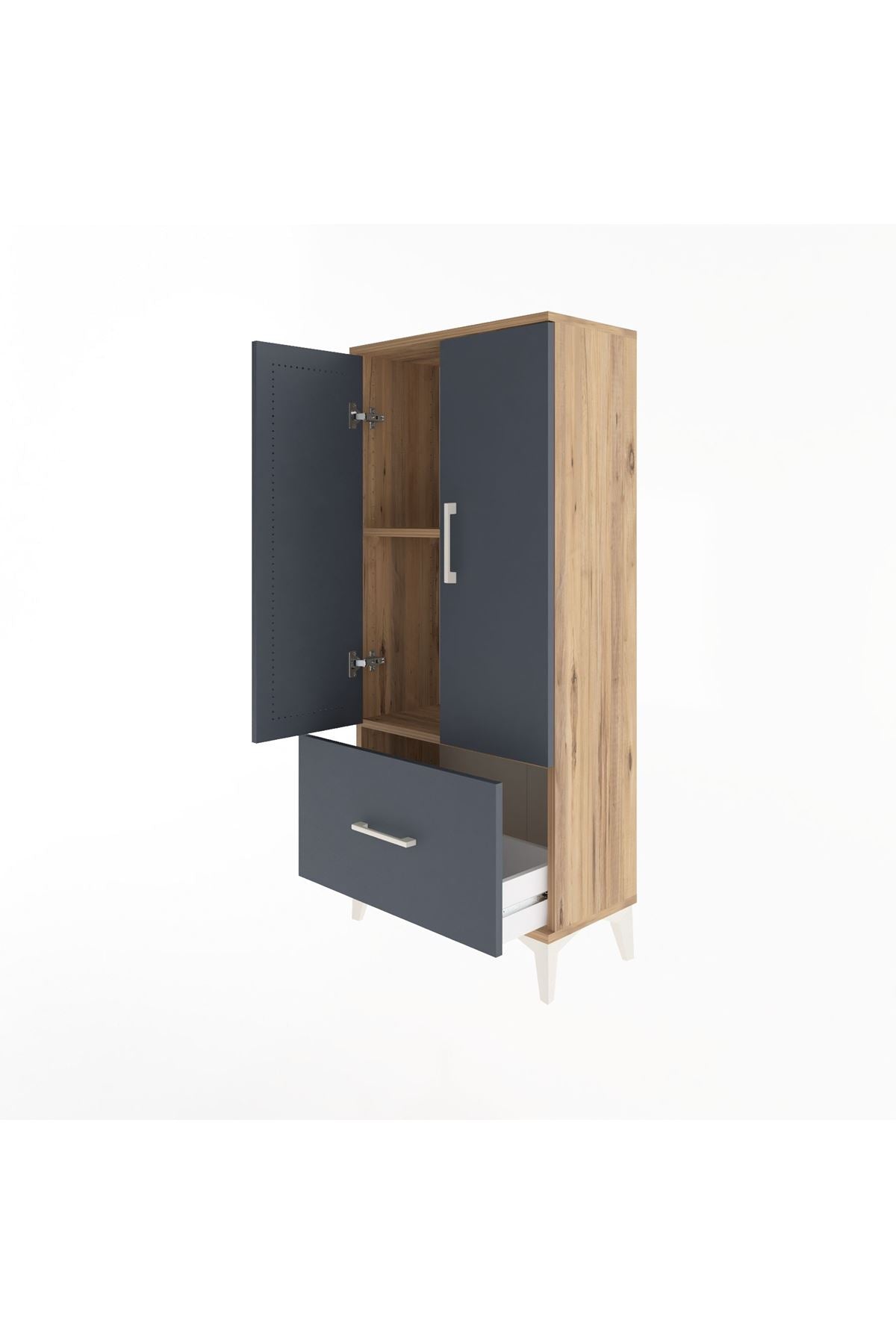 Arges Dolap 2 Raflı Tek Çekmeceli 2 Kapaklı 60x30x134 Çam-Antrasit