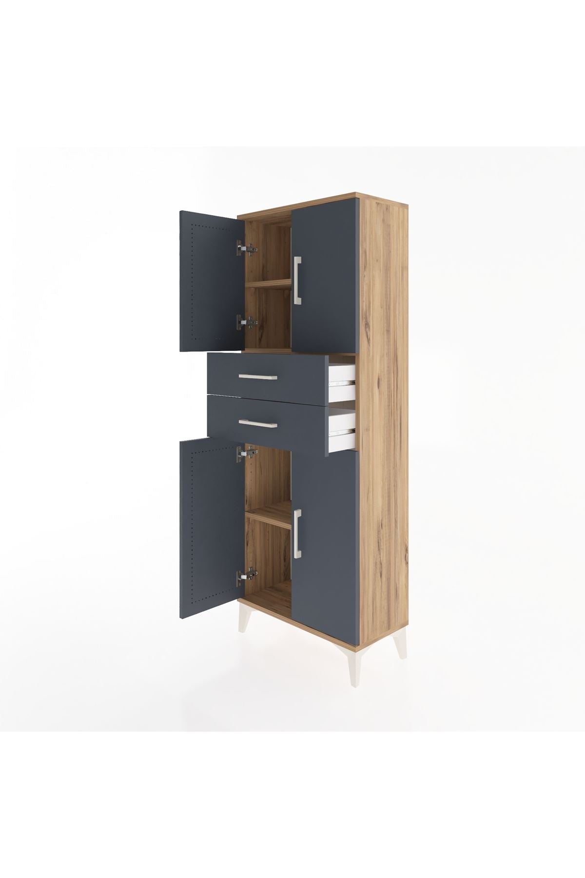 Arges Dolap 3 Raflı 2 Çekmeceli 4 Kapaklı 60x30x163 Çam-Antrasit