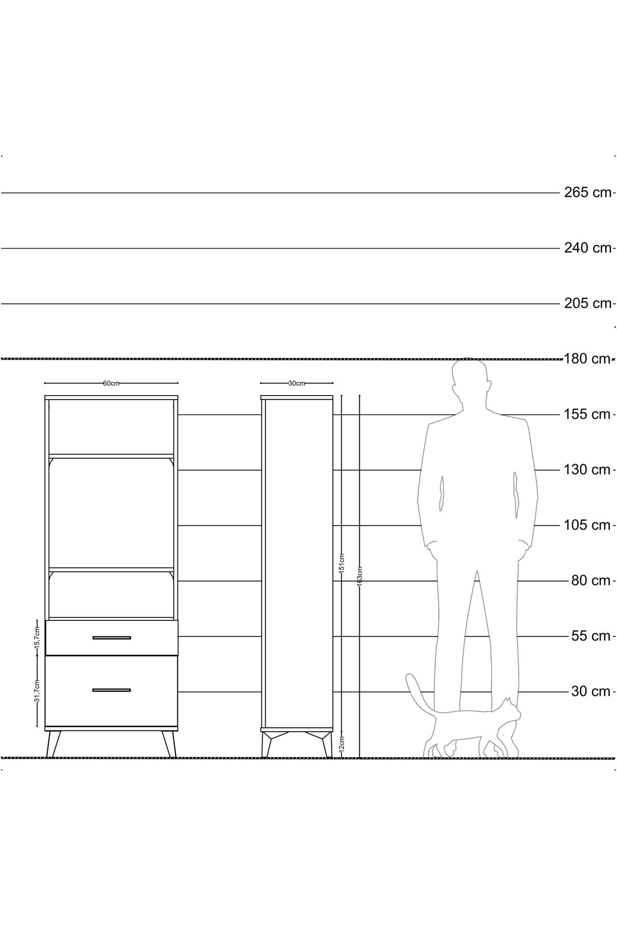 Arges Dolap 3 Raflı 2 Çekmeceli 60x30x163 Çam-Çam