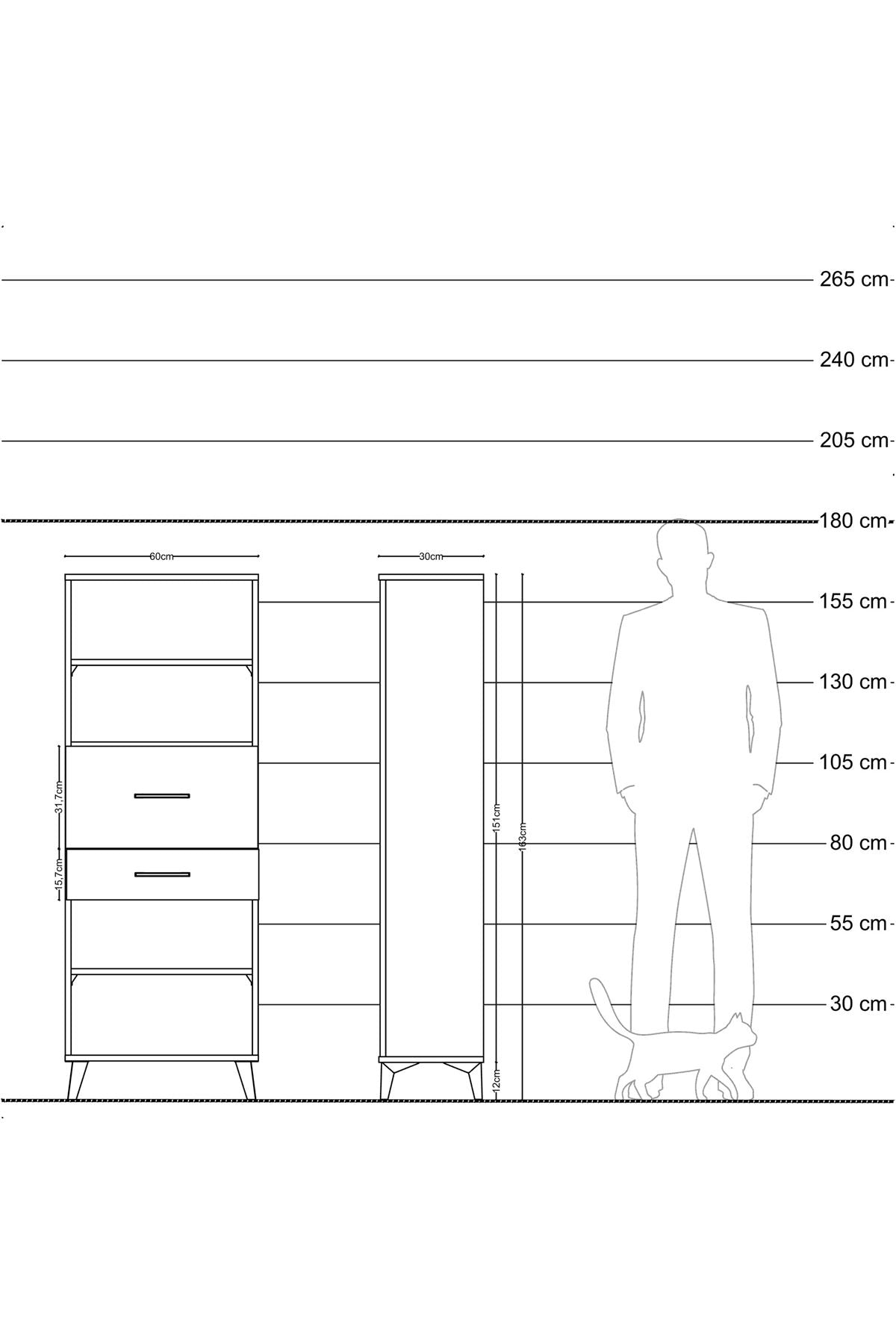 Arges Dolap 3 Raflı 2 Çekmeceli 60x30x163 Çam-Çam