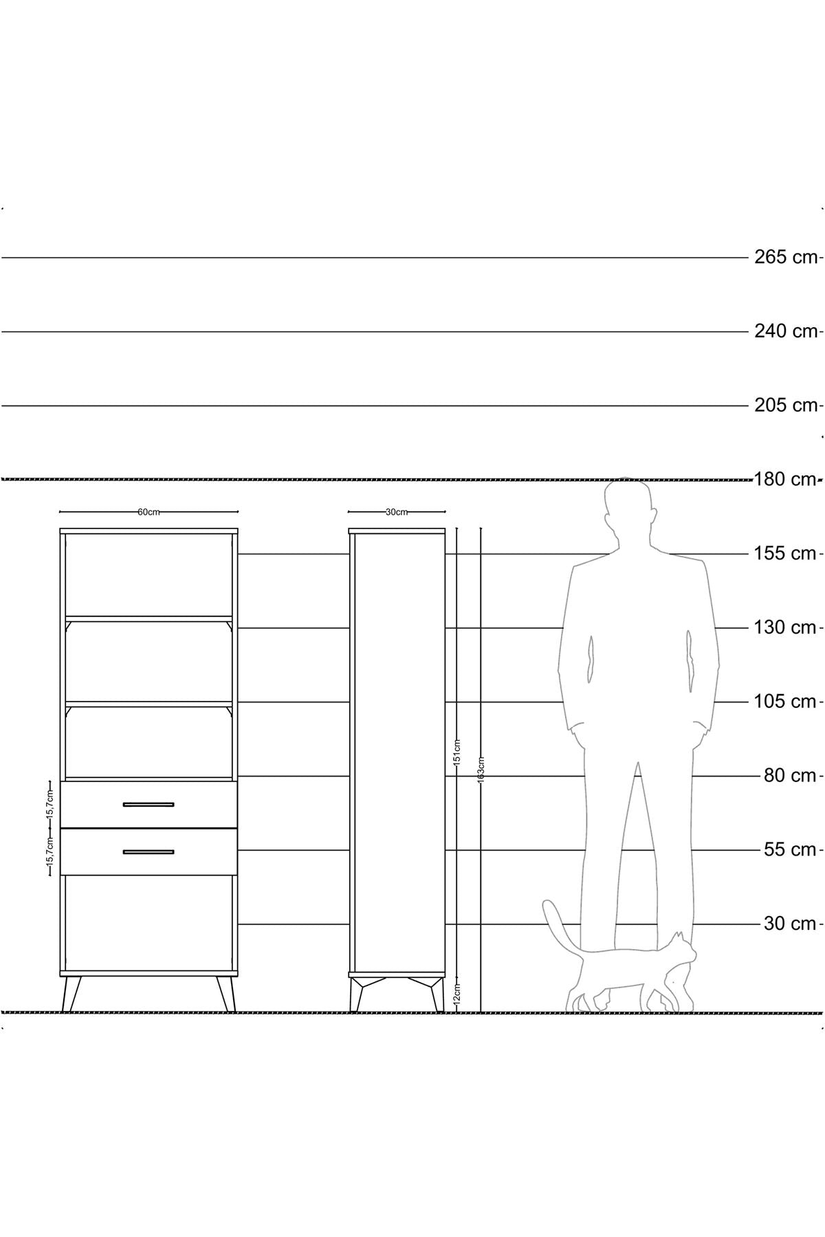 Arges Dolap 3 Raflı 2 Çekmeceli 60x30x163 Çam-Çam