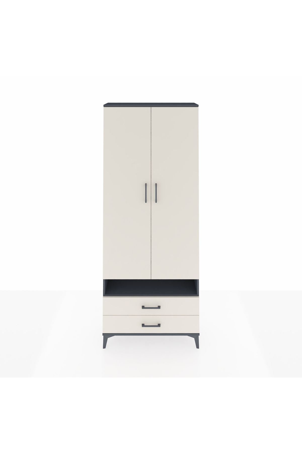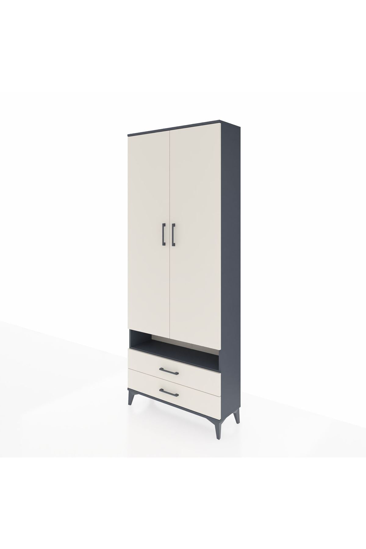 Arges Dolap 3 Raflı 2 Çekmeceli Tek Askılı 88x30x221 Antrasit-Aytaşı