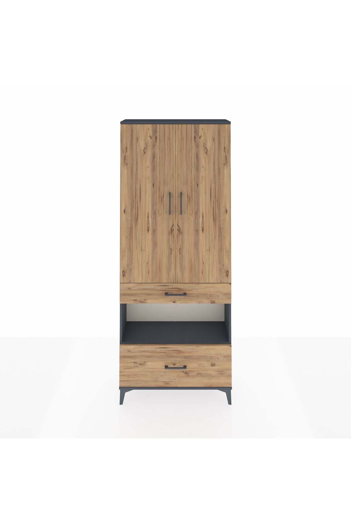 Arges Dolap 3 Raflı 2 Çekmeceli Tek Askılı 88x30x221 Antrasit-Çam