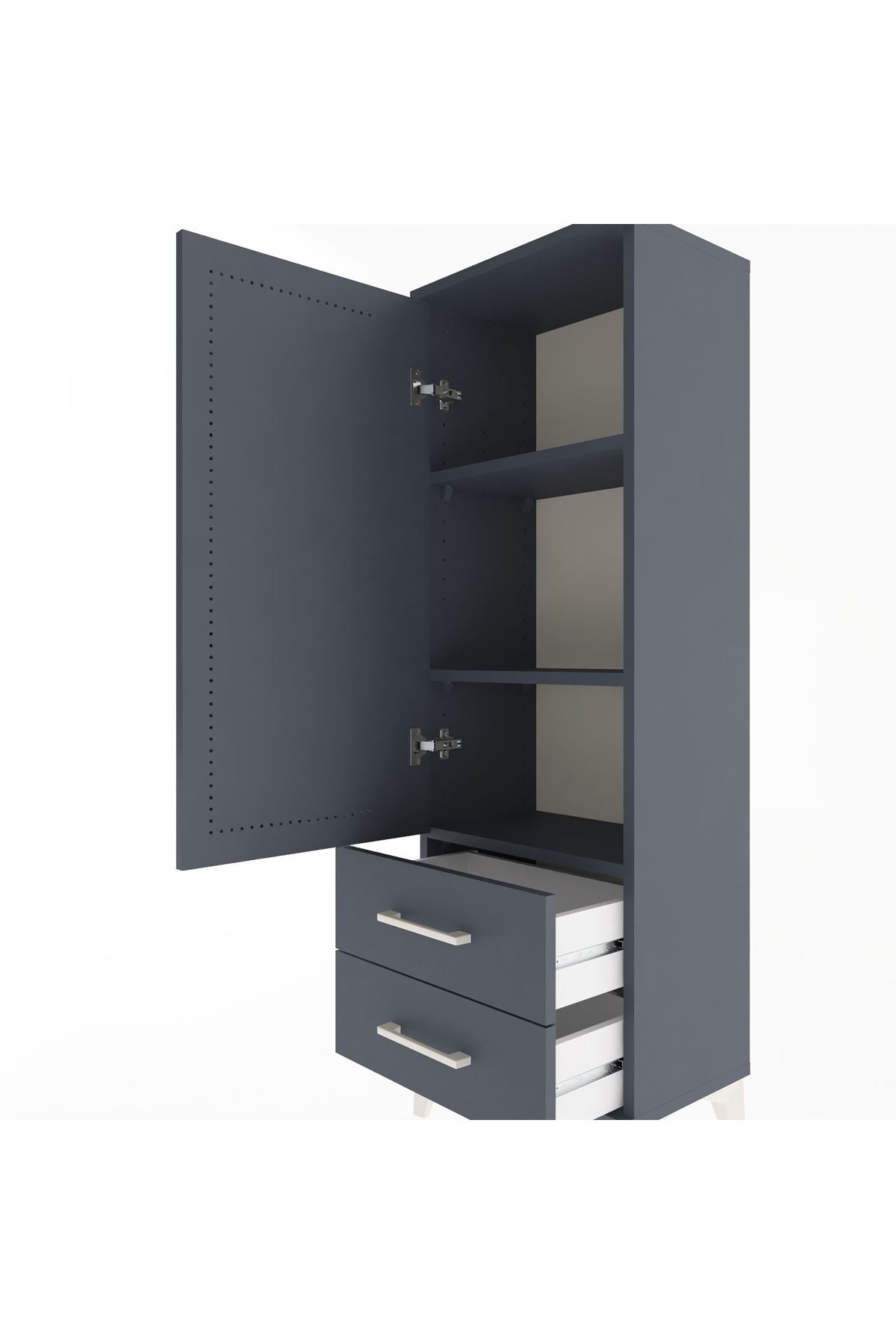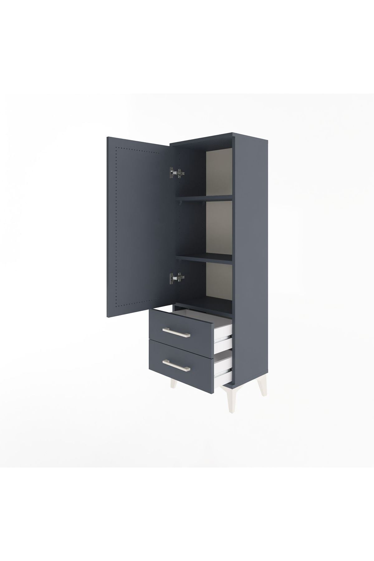 Arges Dolap 3 Raflı 2 Çekmeceli Tek Kapaklı 44x30x134 Antrasit-Antrasit