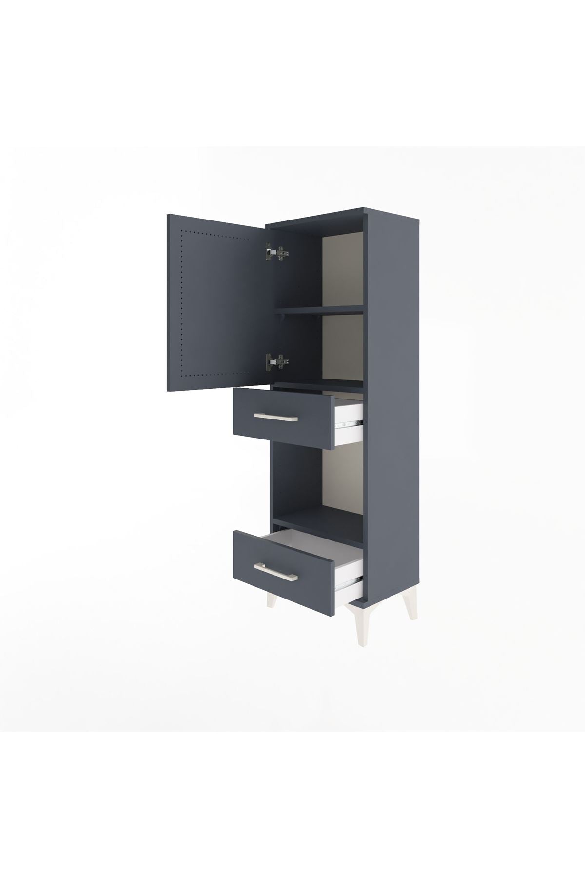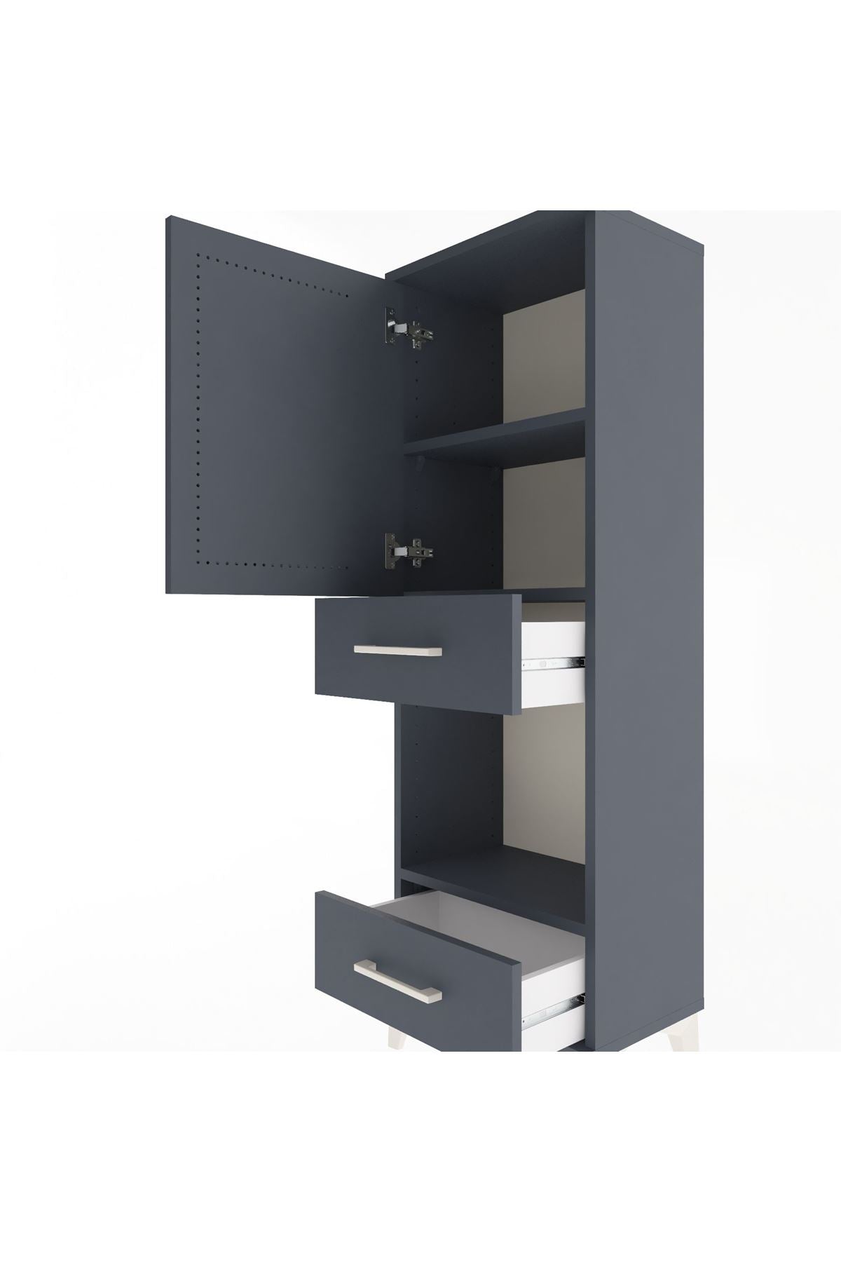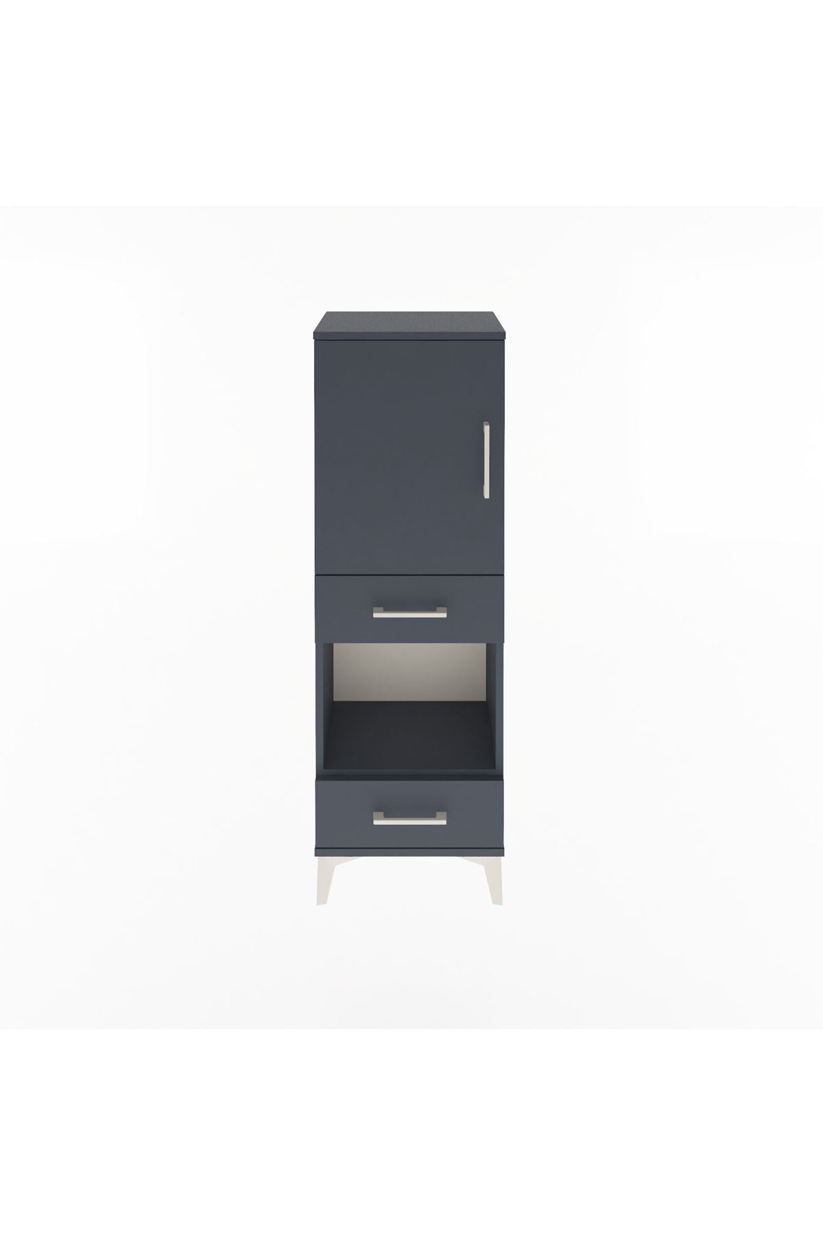 Arges Dolap 3 Raflı 2 Çekmeceli Tek Kapaklı 44x30x134 Antrasit-Antrasit