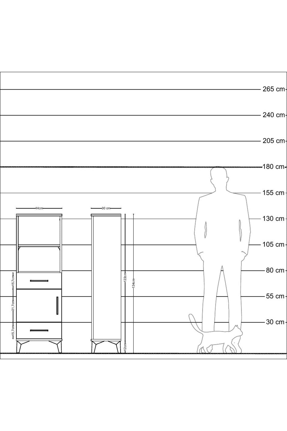 Arges Dolap 3 Raflı 2 Çekmeceli Tek Kapaklı 44x30x134 Aytaşı-Antrasit