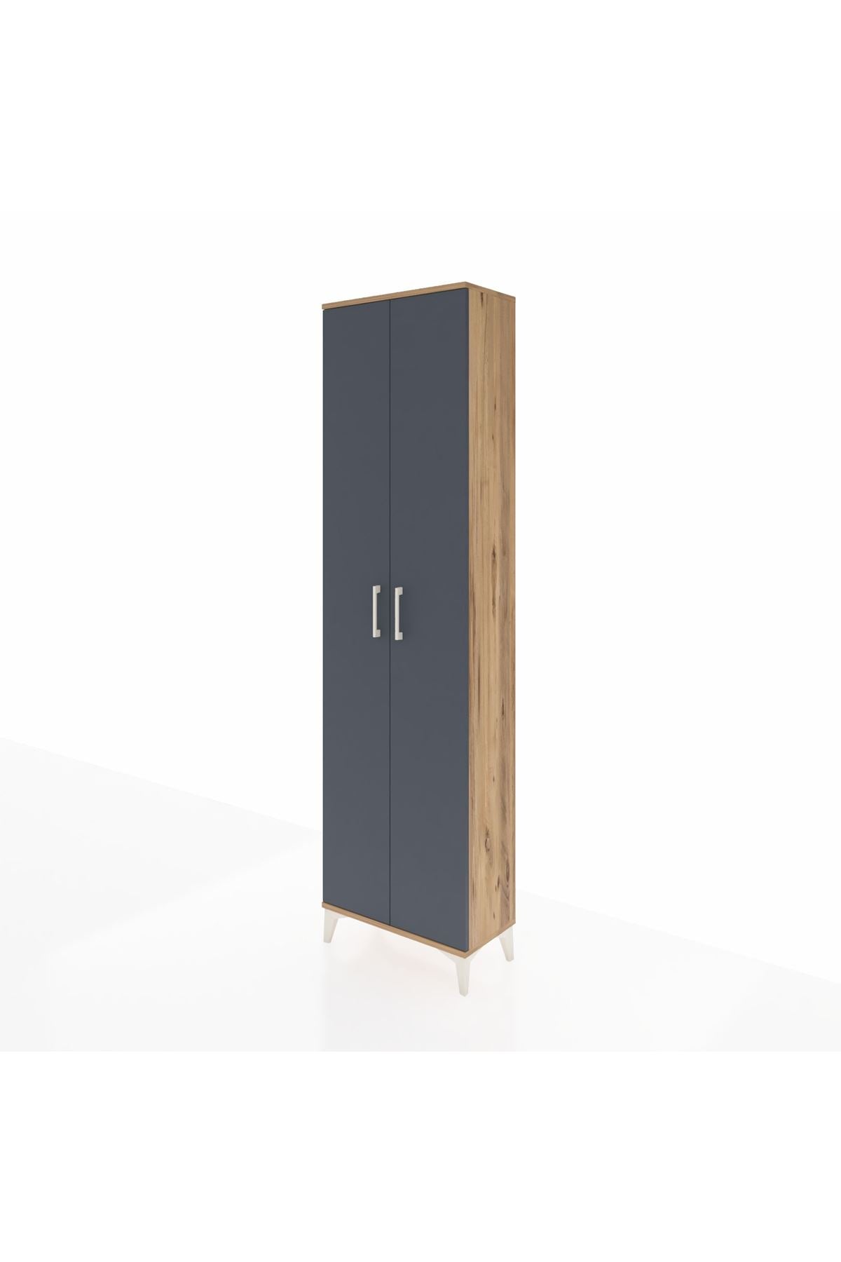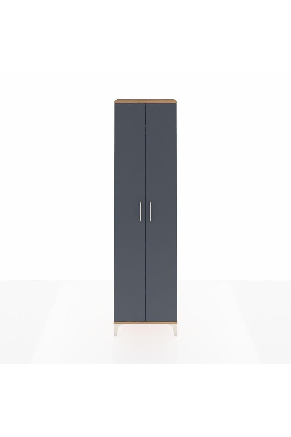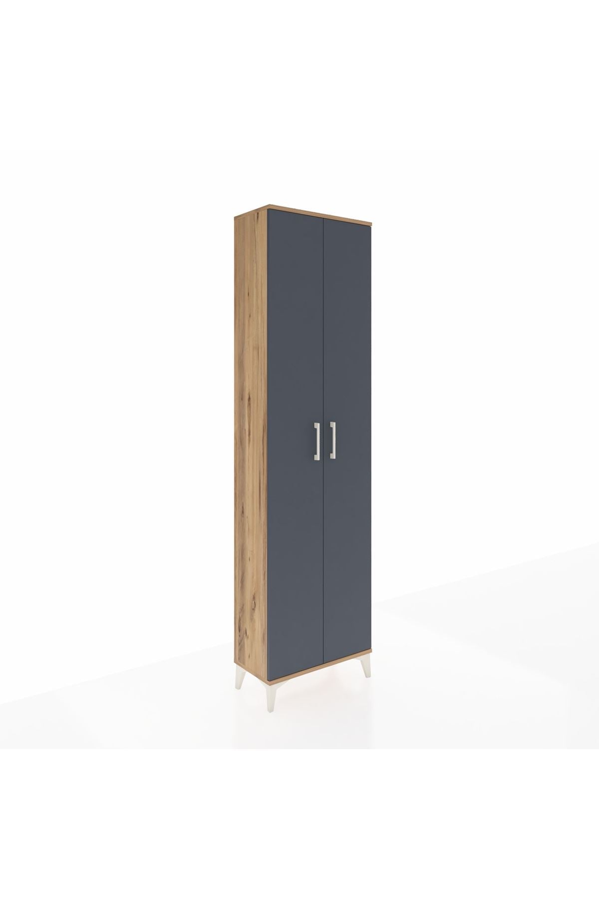 Arges Dolap 3 Raflı 2 Kapaklı Tek Askılı 60x30x221 Çam-Antrasit