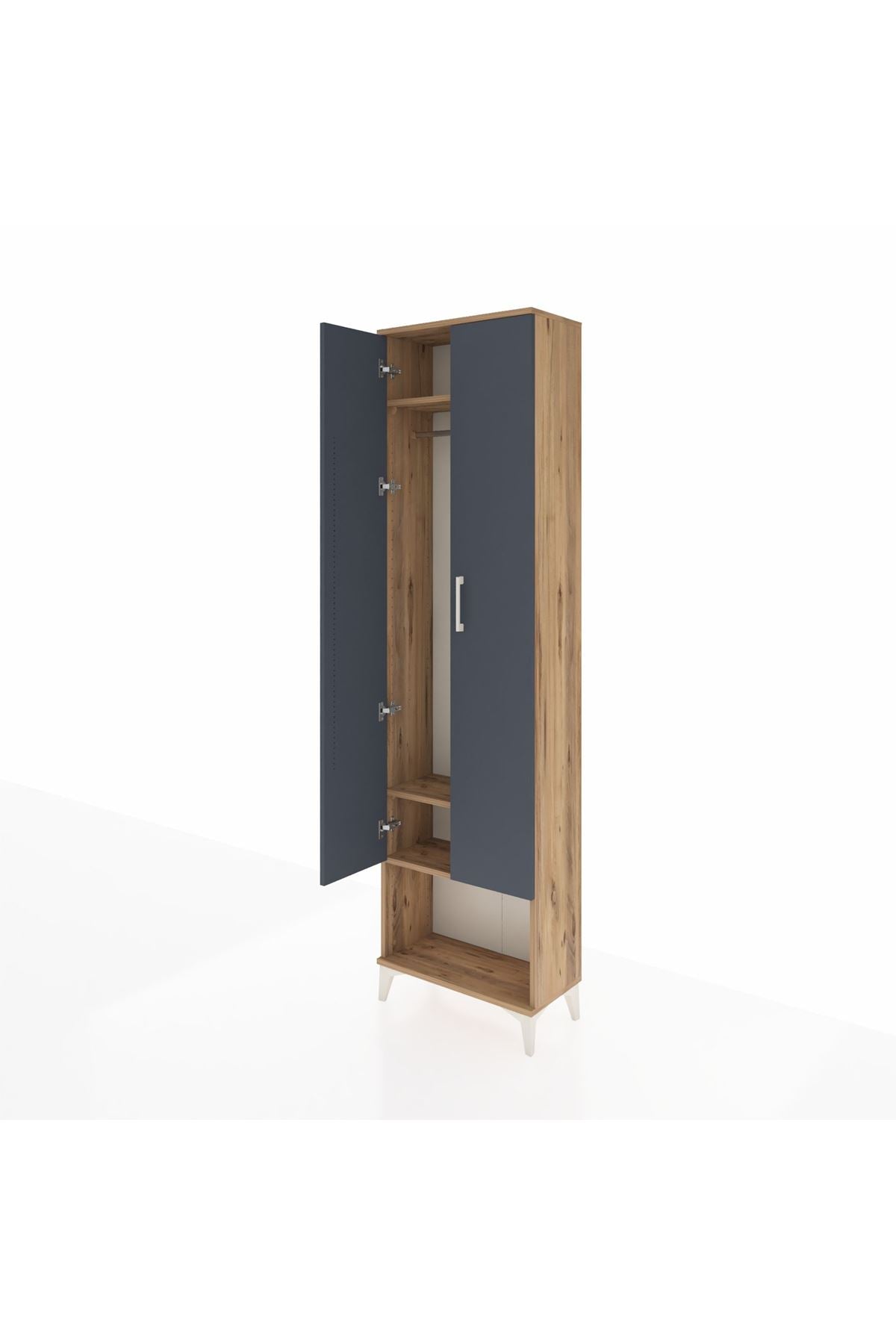 Arges Dolap 3 Raflı 2 Kapaklı Tek Askılı 60x30x221 Çam-Antrasit