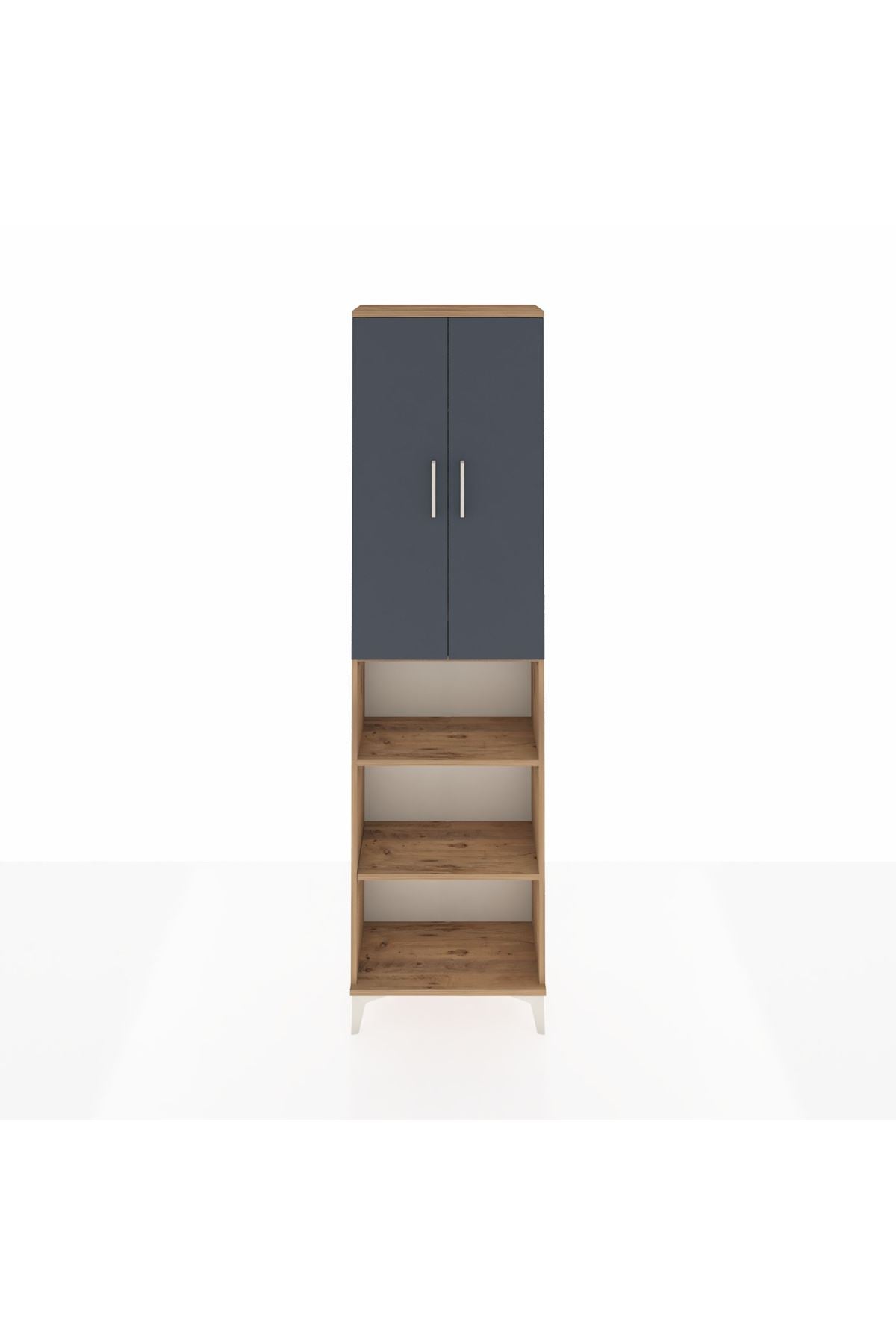 Arges Dolap 3 Raflı 2 Kapaklı Tek Askılı 60x30x221 Çam-Antrasit