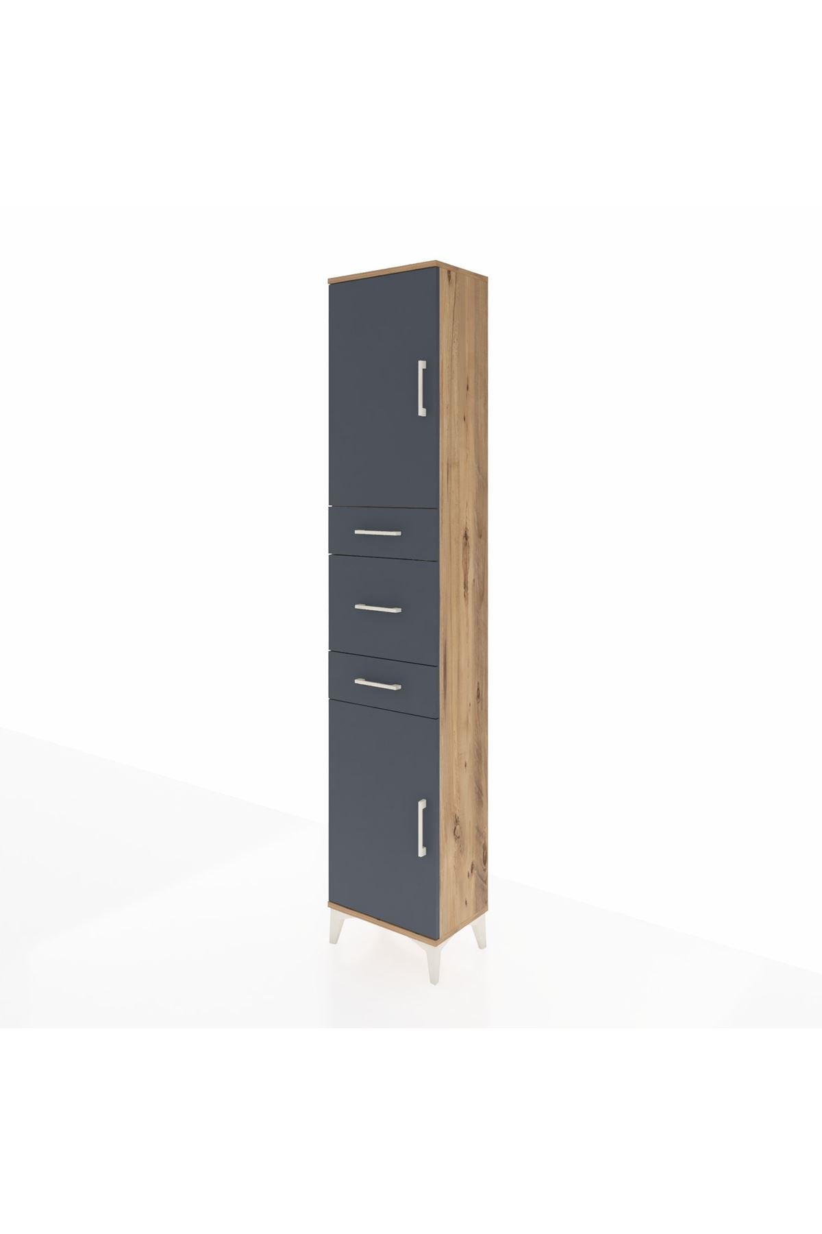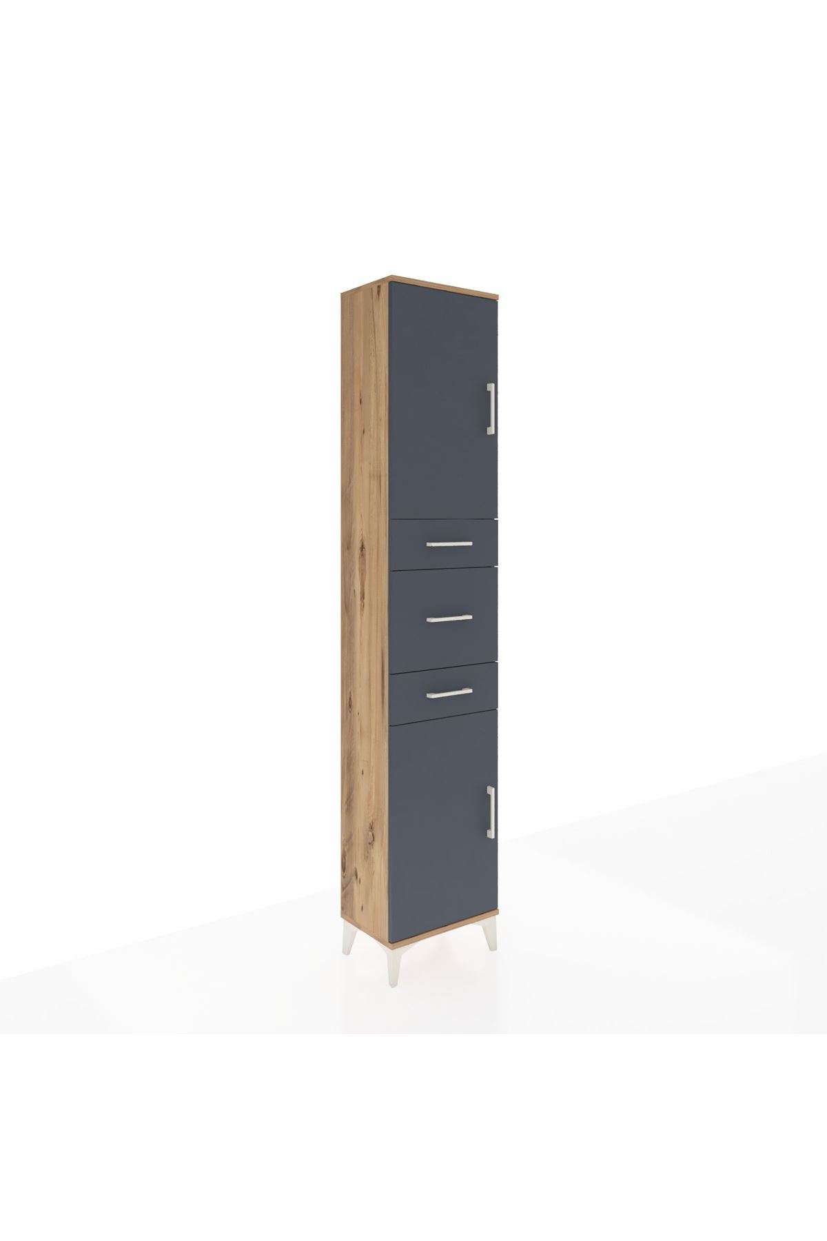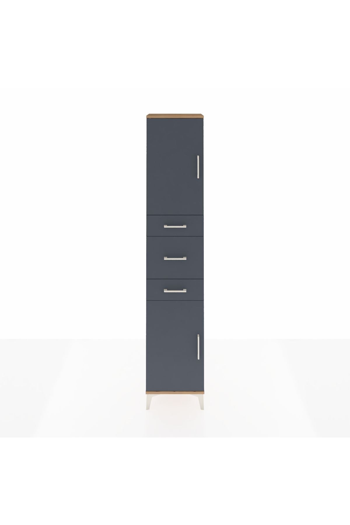 Arges Dolap 3 Raflı 3 Çekmeceli 2 Kapaklı 44x30x221 Çam-Antrasit