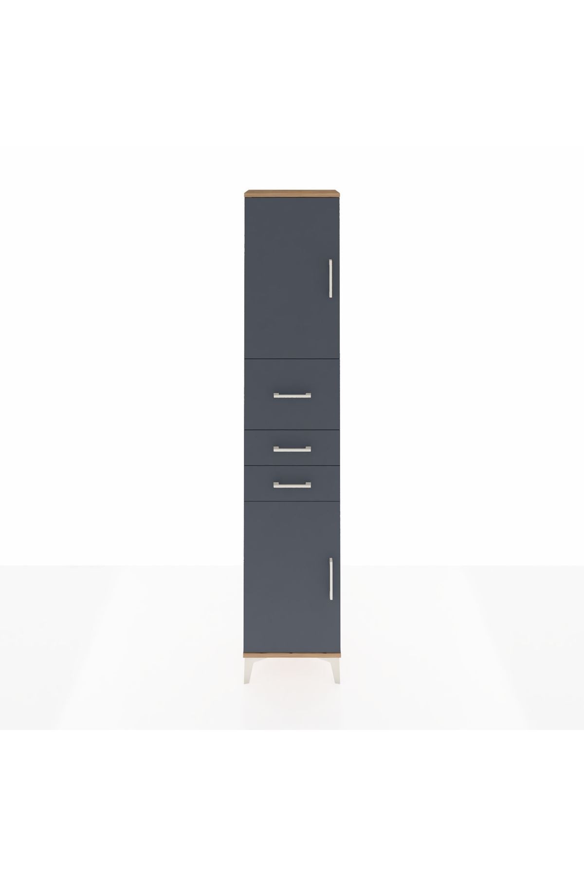 Arges Dolap 3 Raflı 3 Çekmeceli 2 Kapaklı 44x30x221 Çam-Antrasit