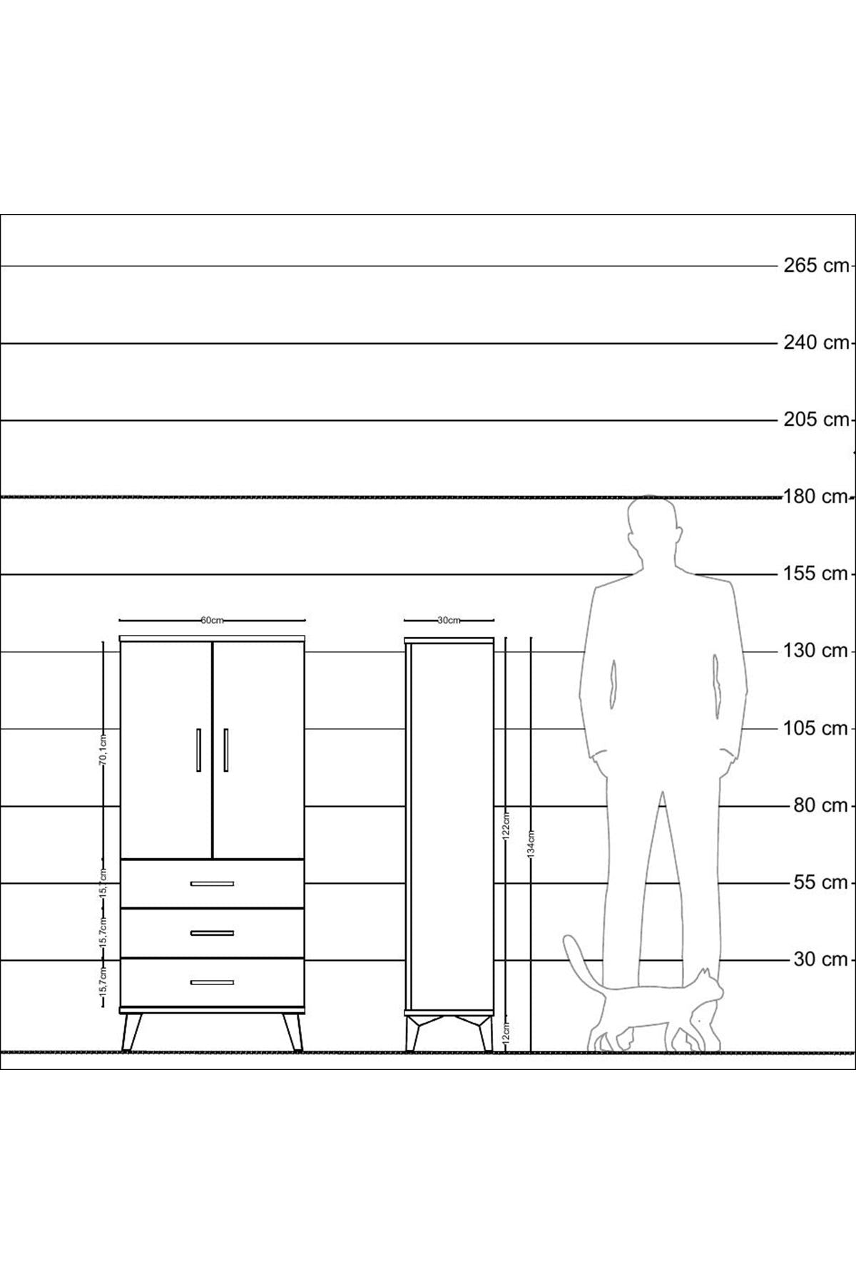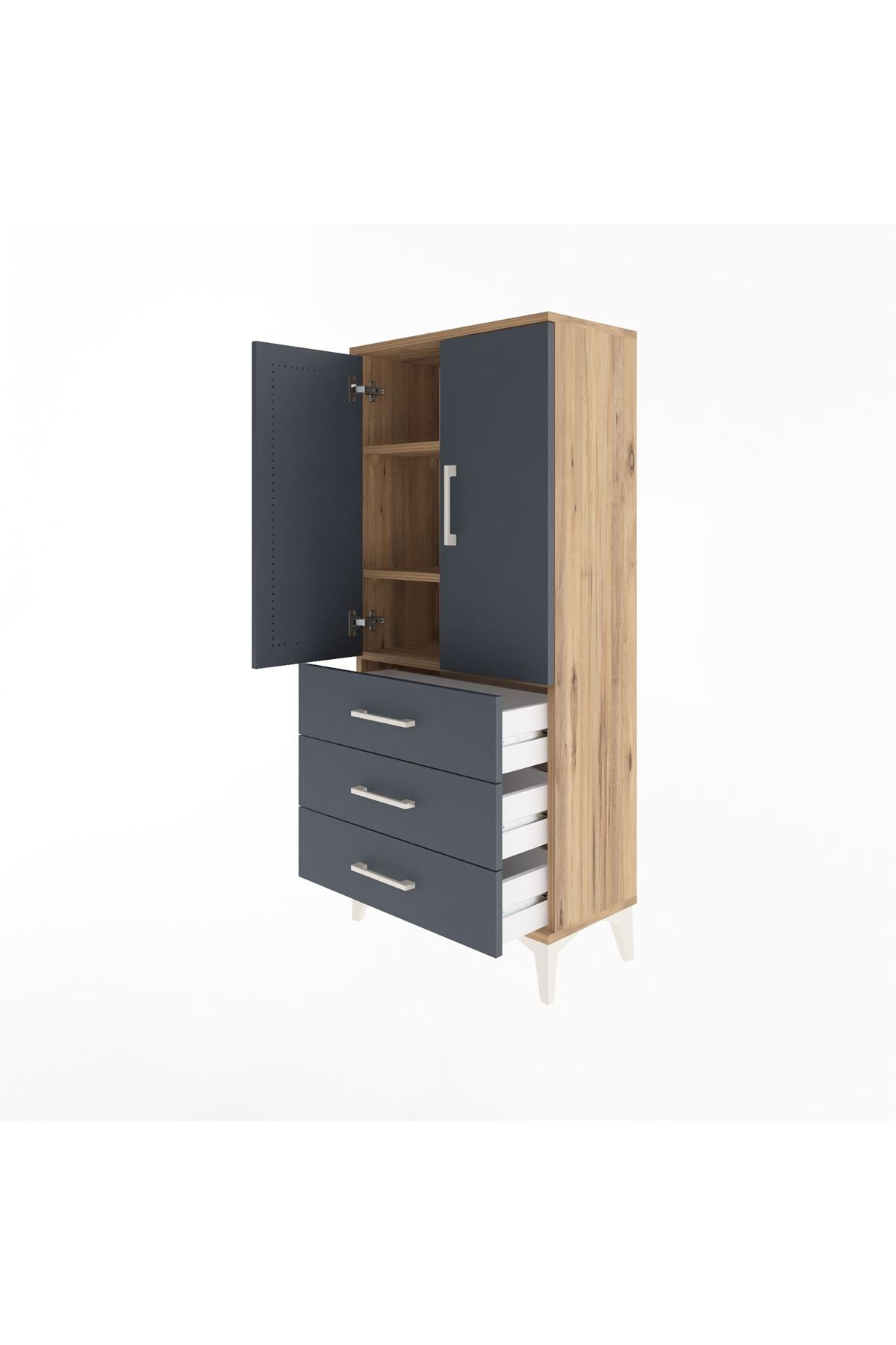 Arges Dolap 3 Raflı 3 Çekmeceli 2 Kapaklı 60x30x134 Çam-Antrasit