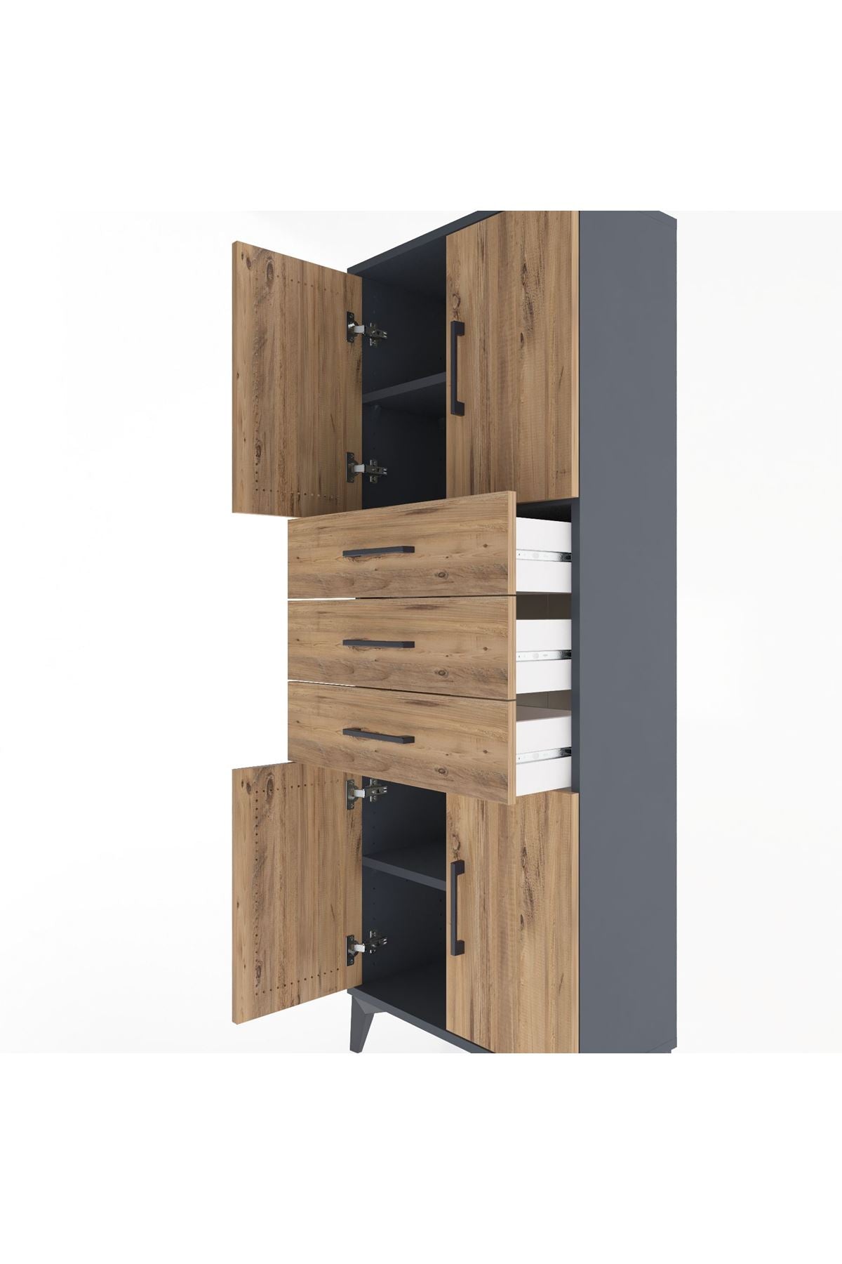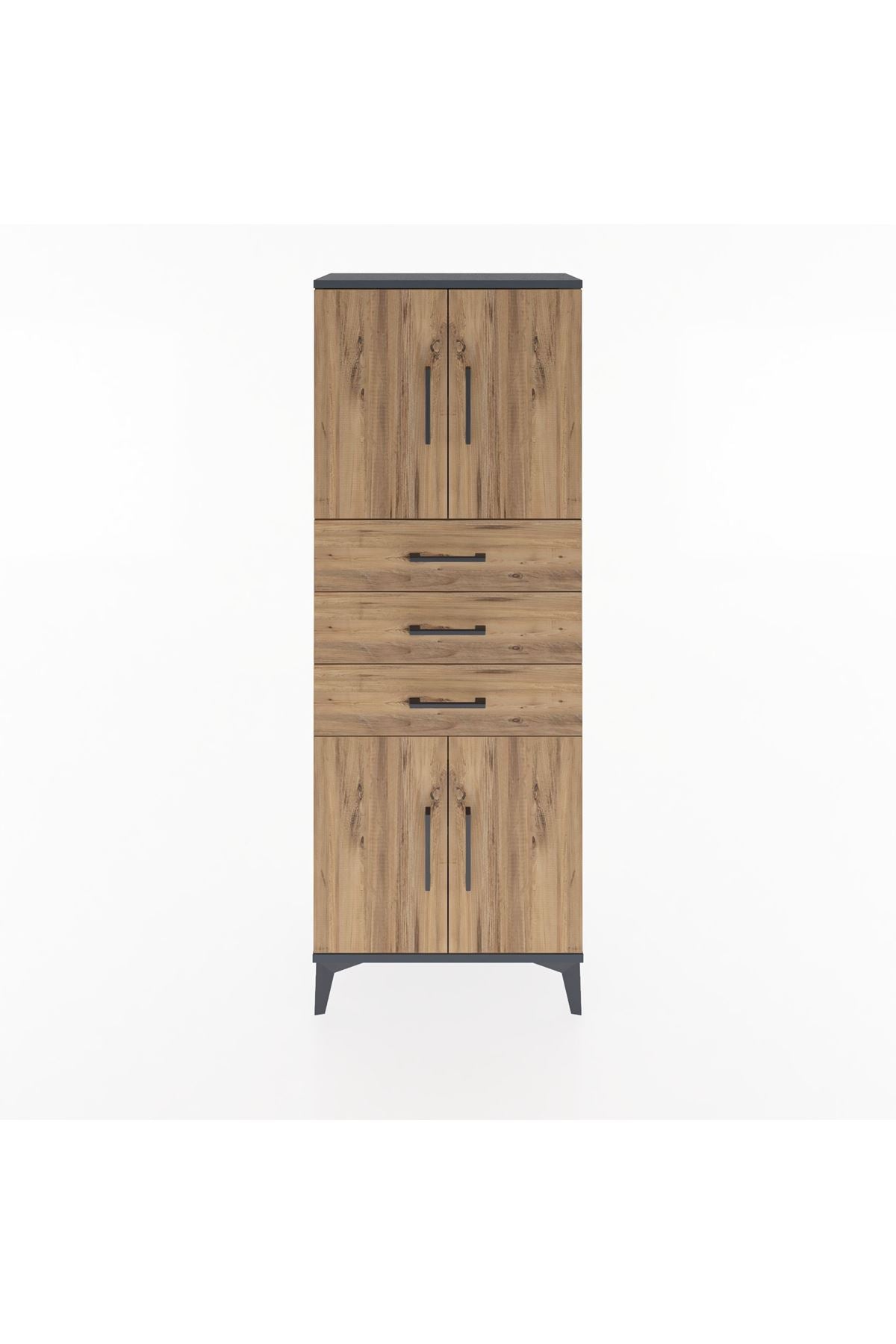 Arges Dolap 3 Raflı 3 Çekmeceli 4 Kapaklı 60x30x163 Antrasit-Çam