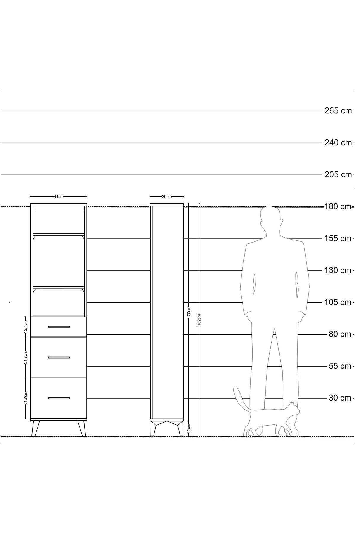 Arges Dolap 3 Raflı 3 Çekmeceli 44x30x182 Aytaşı-Antrasit