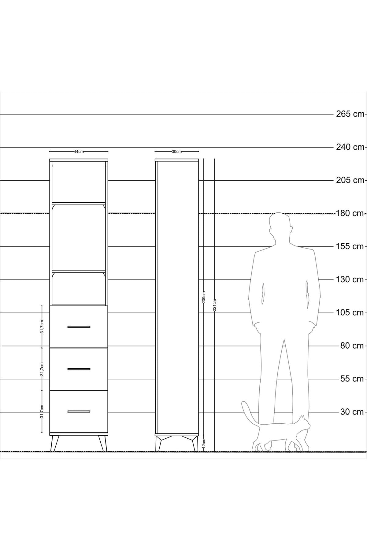 Arges Dolap 3 Raflı 3 Çekmeceli 44x30x221 Aytaşı-Antrasit