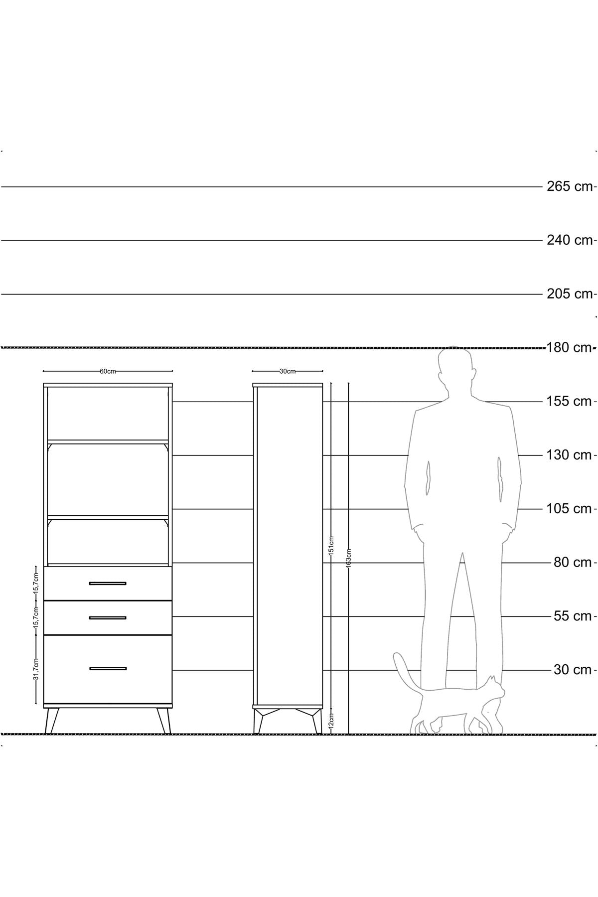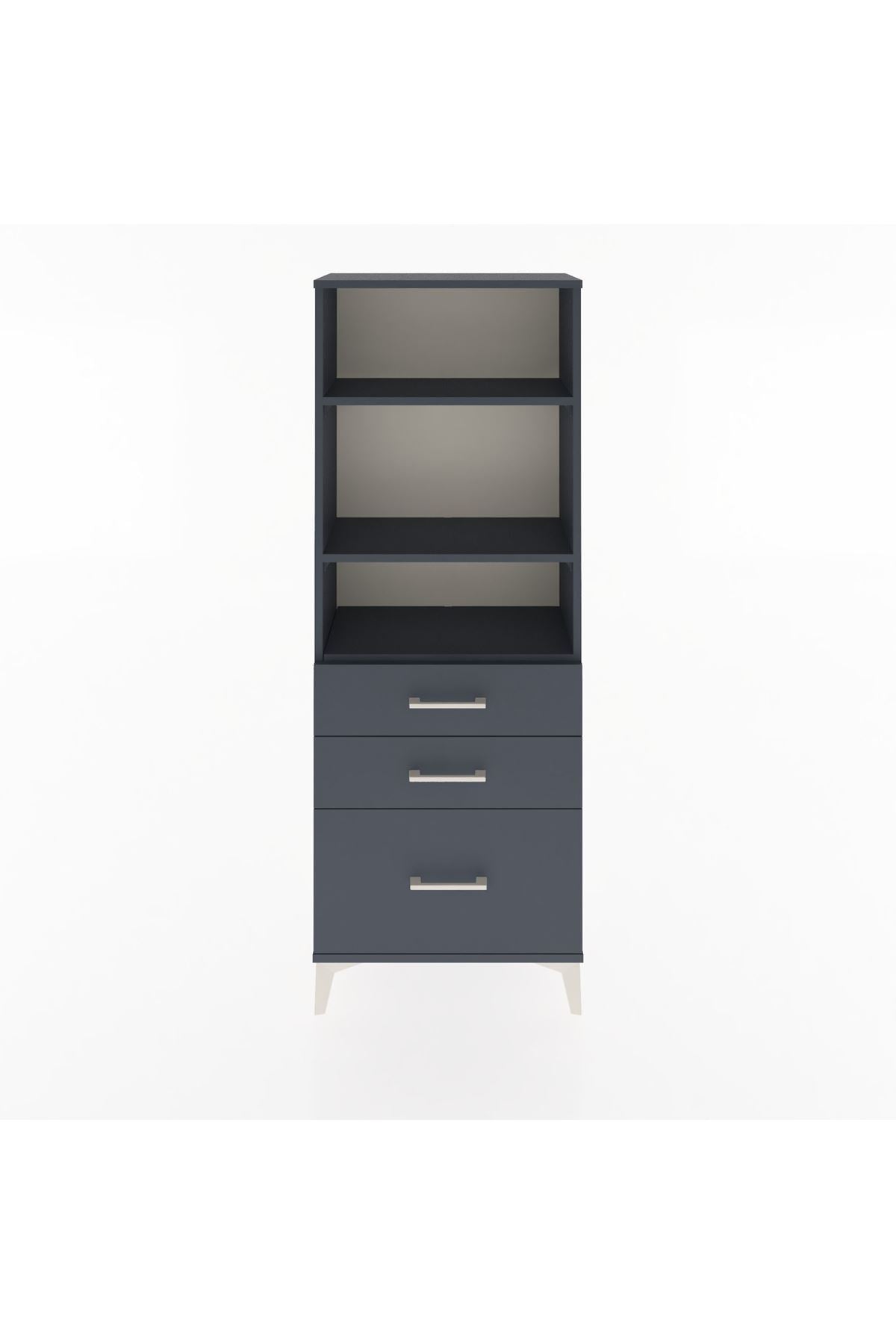 Arges Dolap 3 Raflı 3 Çekmeceli 60x30x163 Antrasit-Antrasit