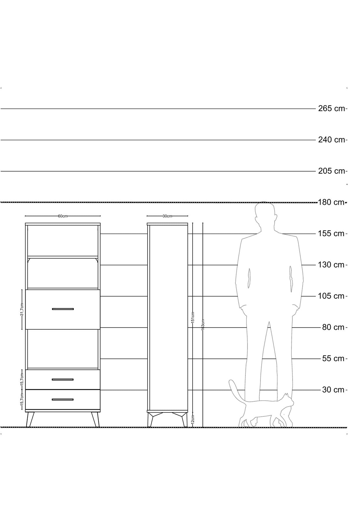 Arges Dolap 3 Raflı 3 Çekmeceli 60x30x163 Antrasit-Aytaşı