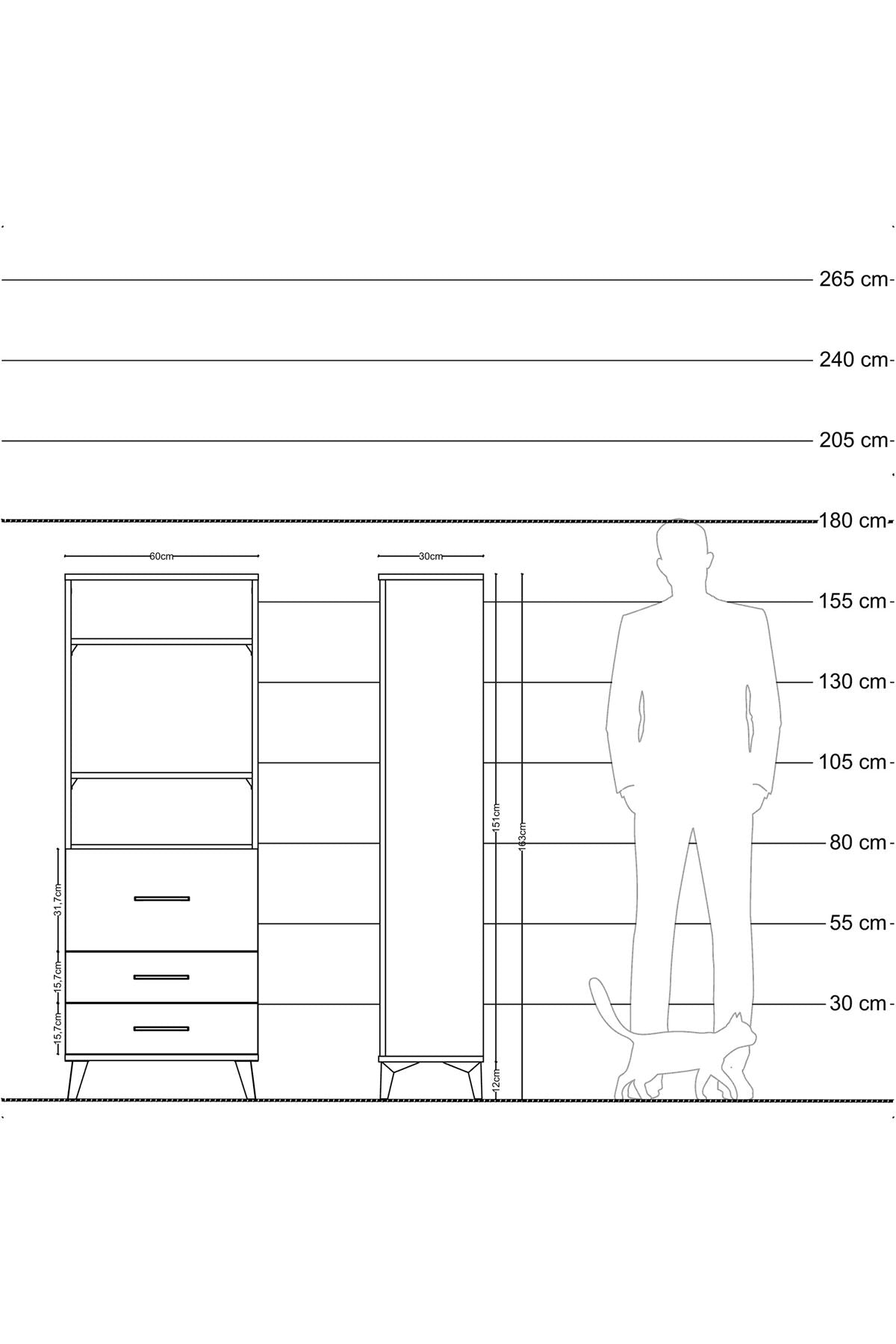 Arges Dolap 3 Raflı 3 Çekmeceli 60x30x163 Çam-Çam