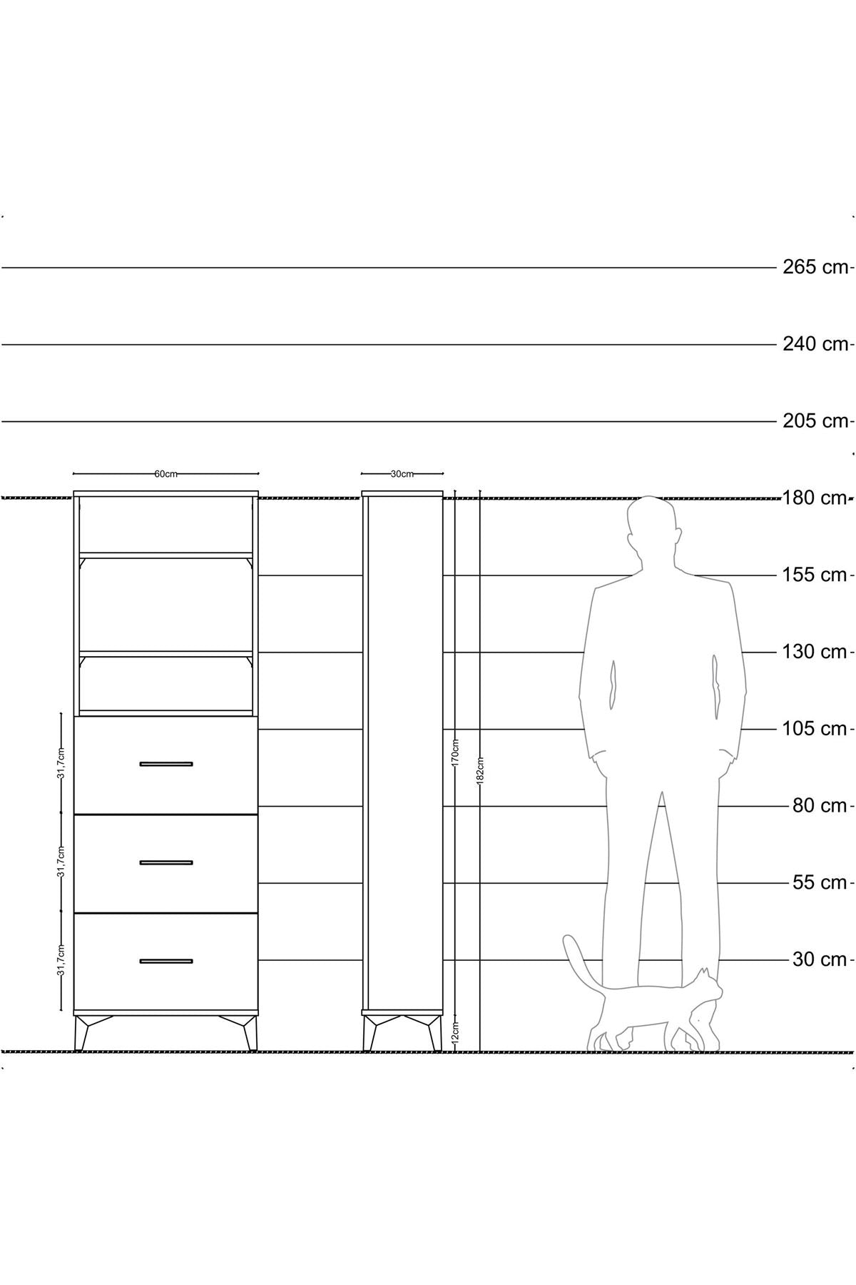 Arges Dolap 3 Raflı 3 Çekmeceli 60x30x182 Antrasit-Çam