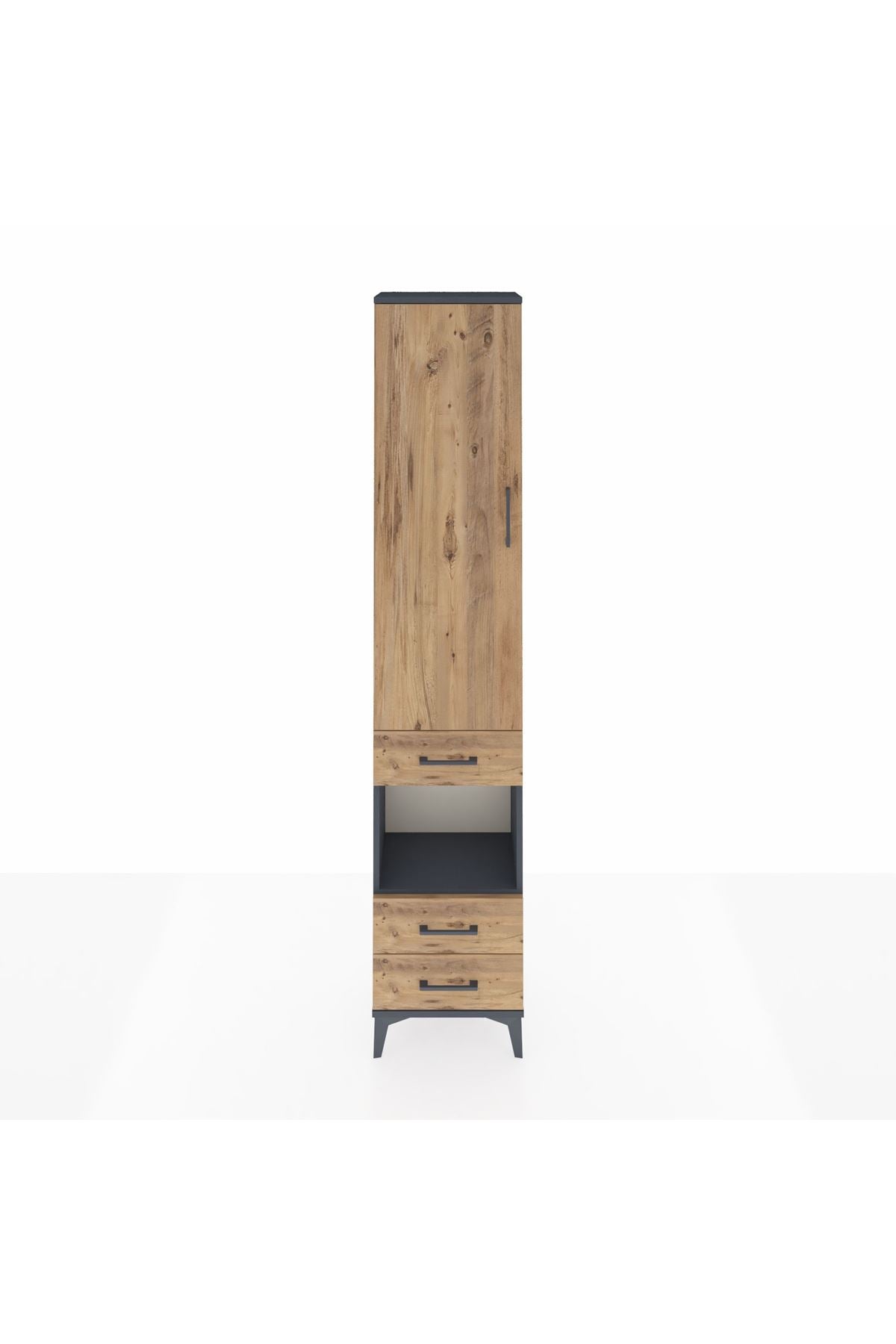 Arges Dolap 3 Raflı 3 Çekmeceli Tek Askılı 44x30x221 Antrasit-Çam