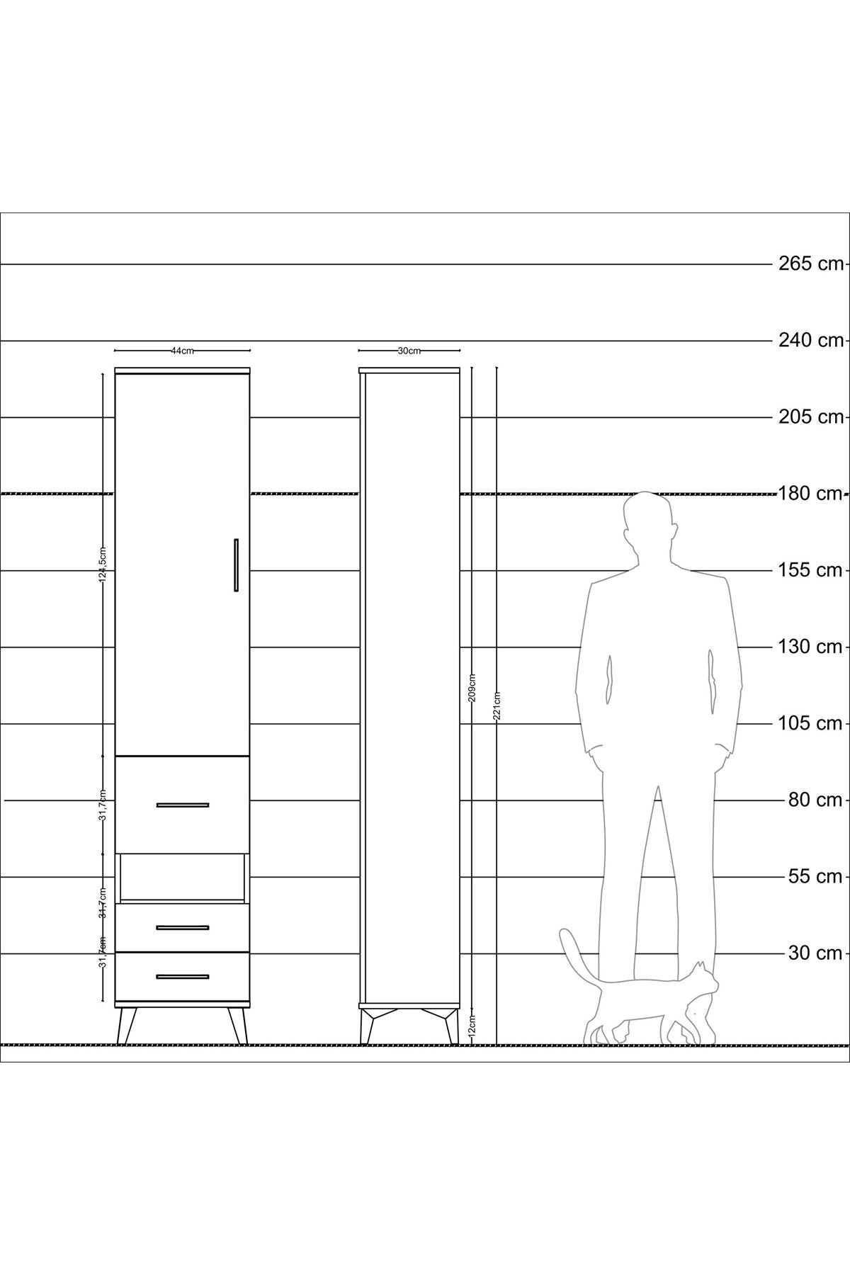 Arges Dolap 3 Raflı 3 Çekmeceli Tek Askılı 44x30x221 Antrasit-Antrasit