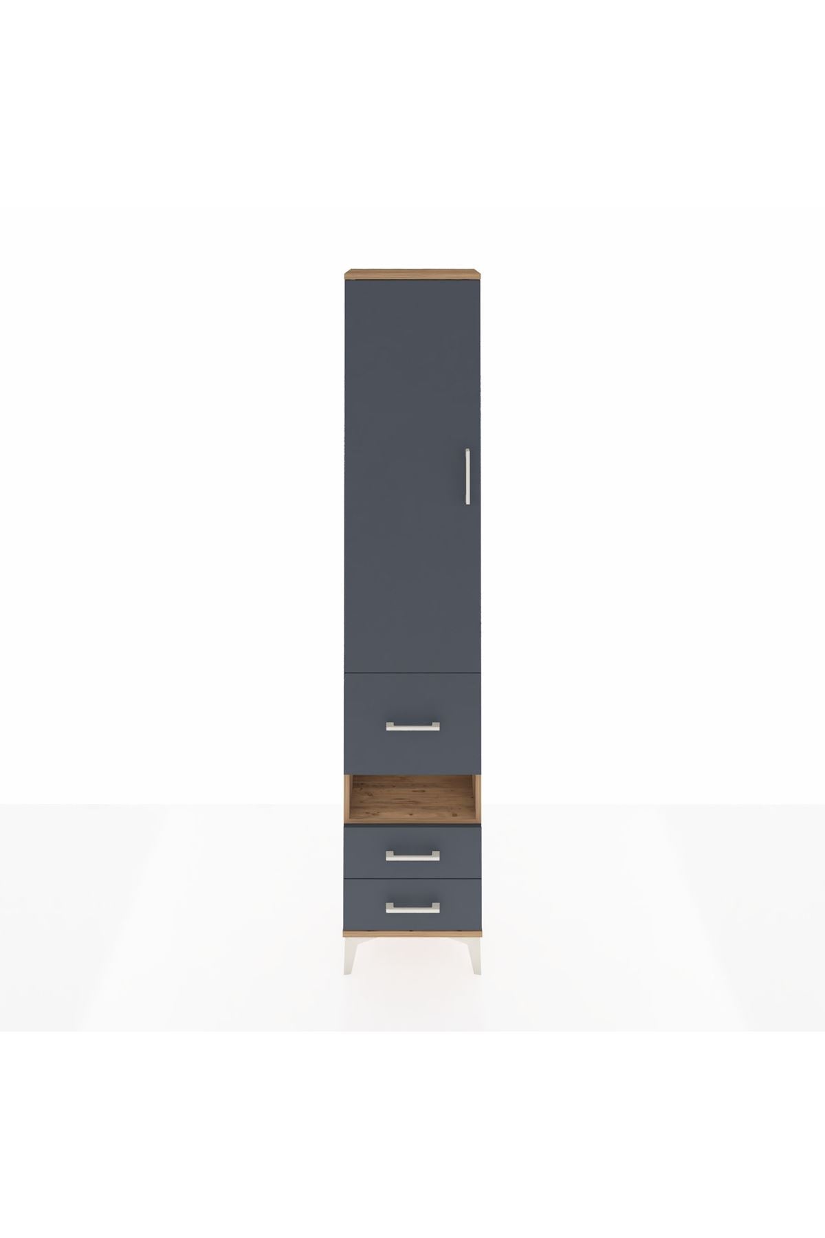 Arges Dolap 3 Raflı 3 Çekmeceli Tek Askılı 44x30x221 Çam-Antrasit