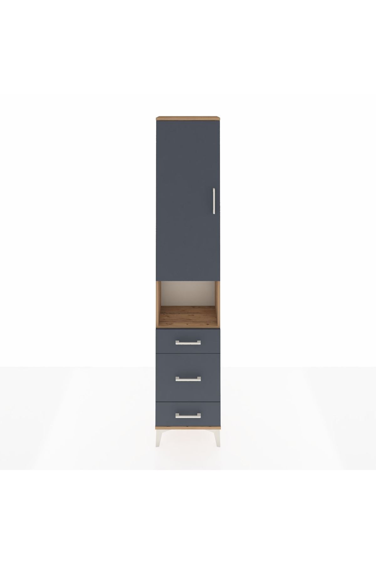 Arges Dolap 3 Raflı 3 Çekmeceli Tek Askılı 44x30x221 Çam-Antrasit