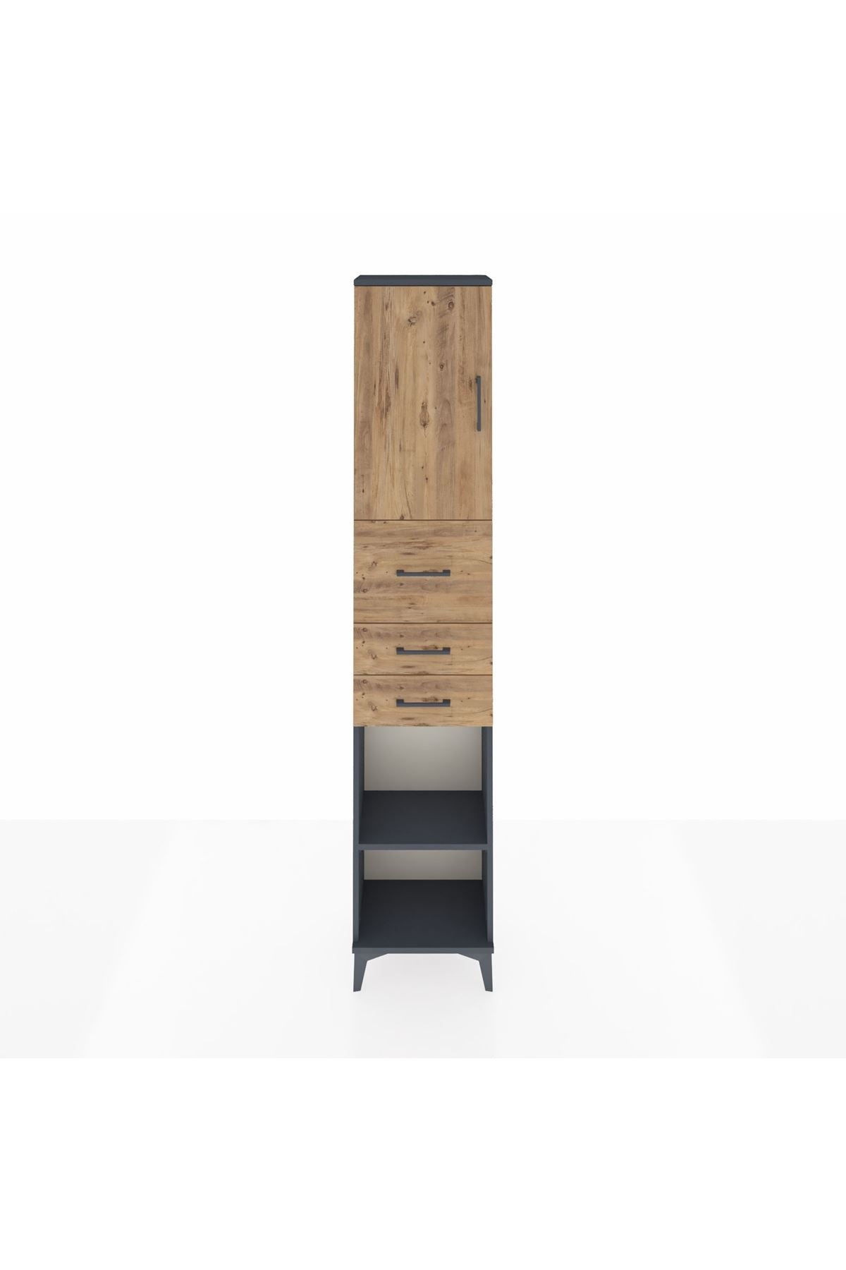 Arges Dolap 3 Raflı 3 Çekmeceli Tek Kapaklı 44x30x221 Antrasit-Çam