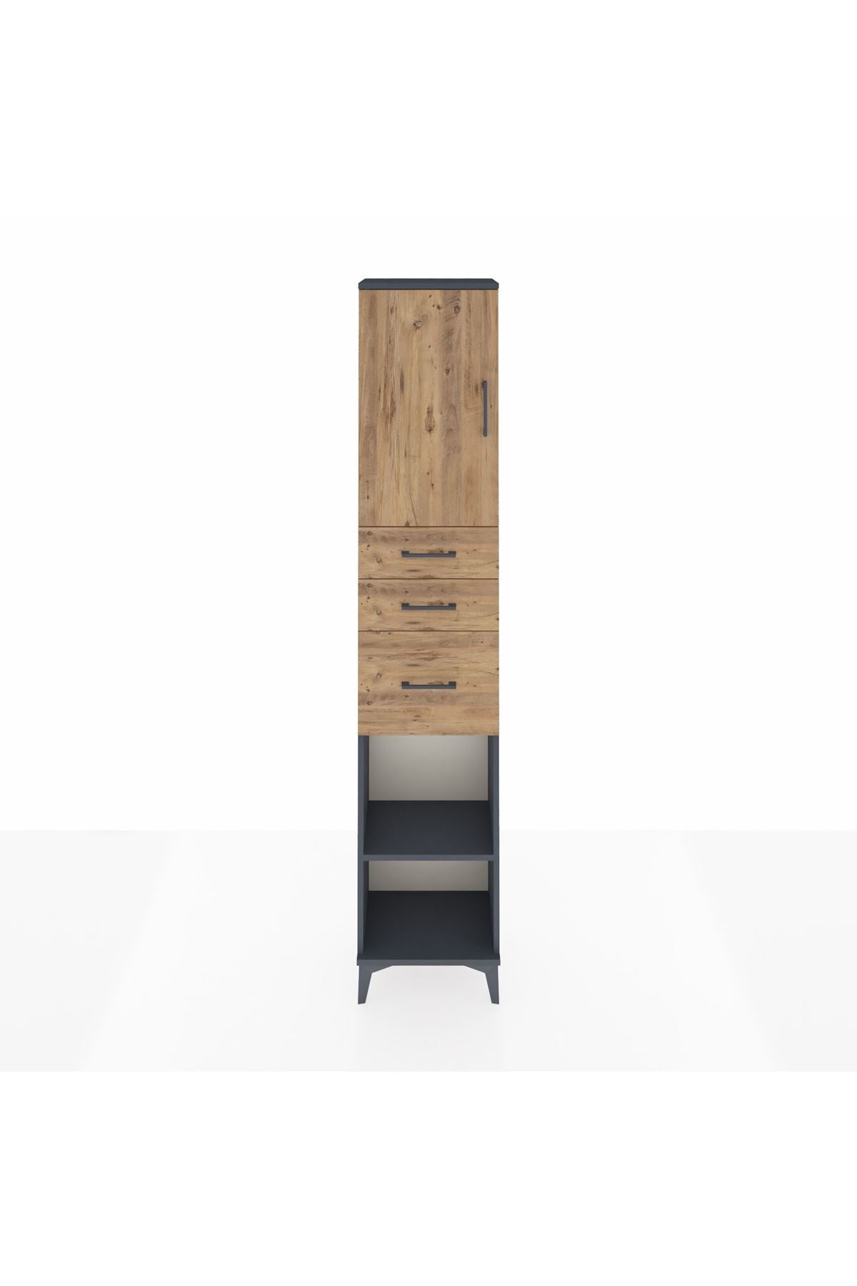 Arges Dolap 3 Raflı 3 Çekmeceli Tek Kapaklı 44x30x221 Antrasit-Çam