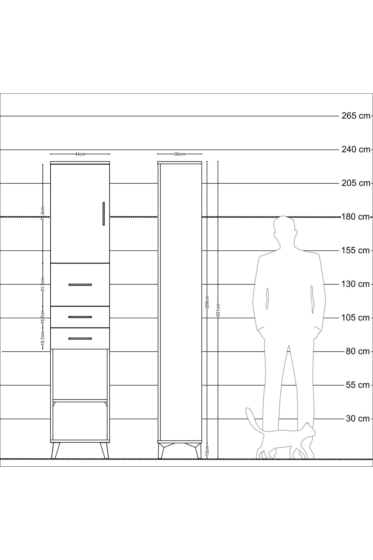Arges Dolap 3 Raflı 3 Çekmeceli Tek Kapaklı 44x30x221 Aytaşı-Çam