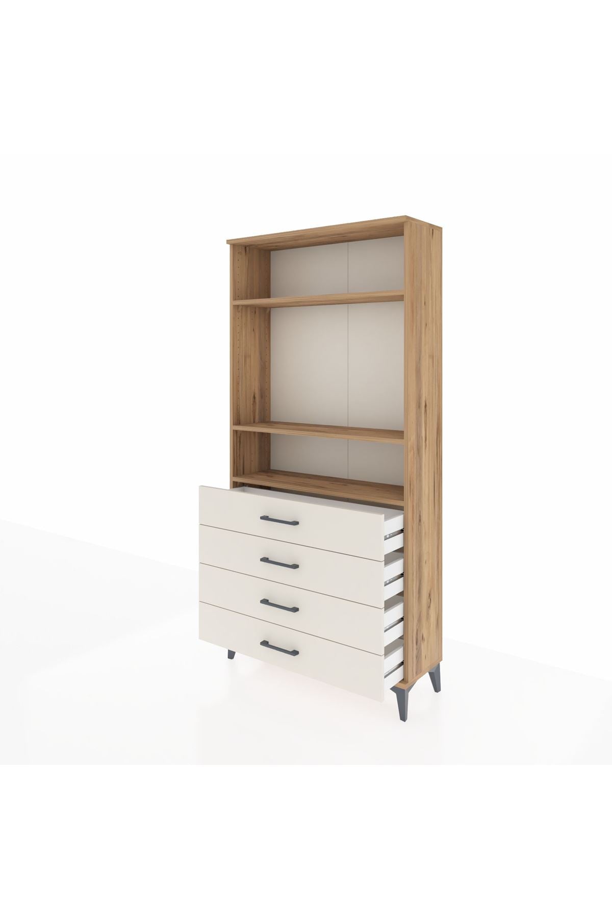 Arges Dolap 3 Raflı 4 Çekmeceli 88x30x182 Çam-Aytaşı