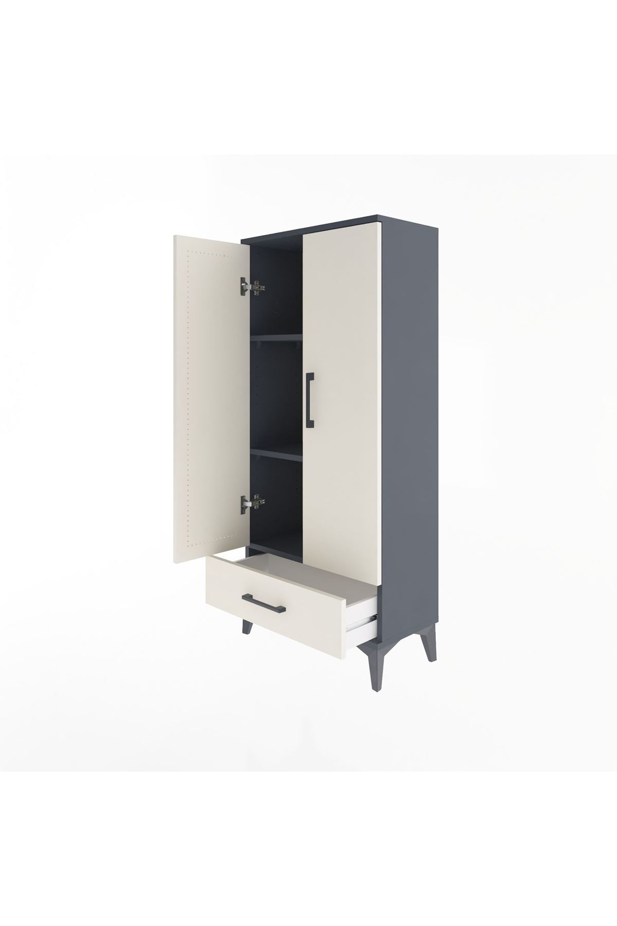 Arges Dolap 3 Raflı Tek Çekmeceli 2 Kapaklı 60x30x134 Antrasit-Aytaşı