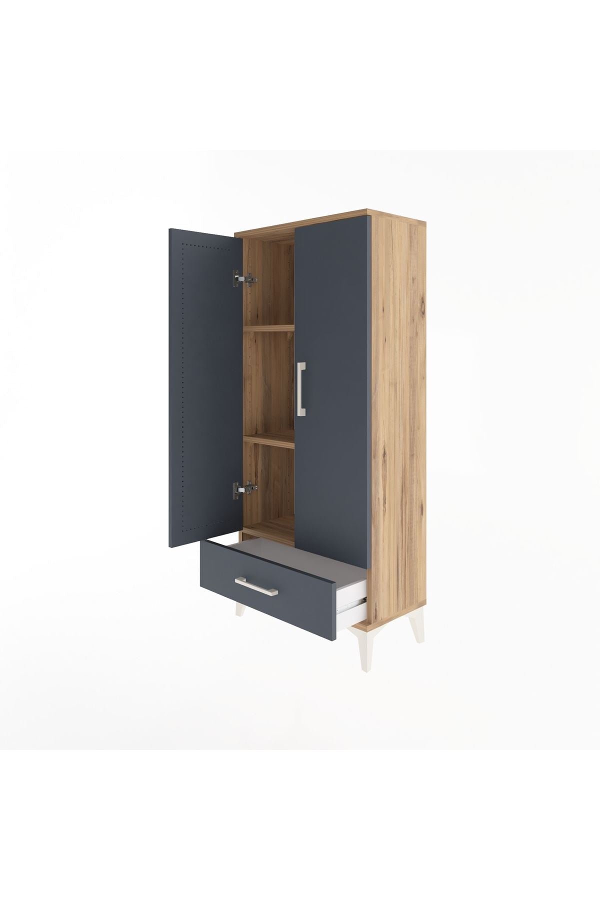 Arges Dolap 3 Raflı Tek Çekmeceli 2 Kapaklı 60x30x134 Çam-Antrasit