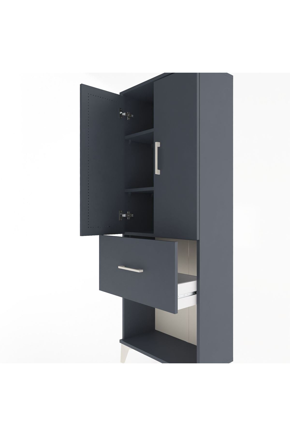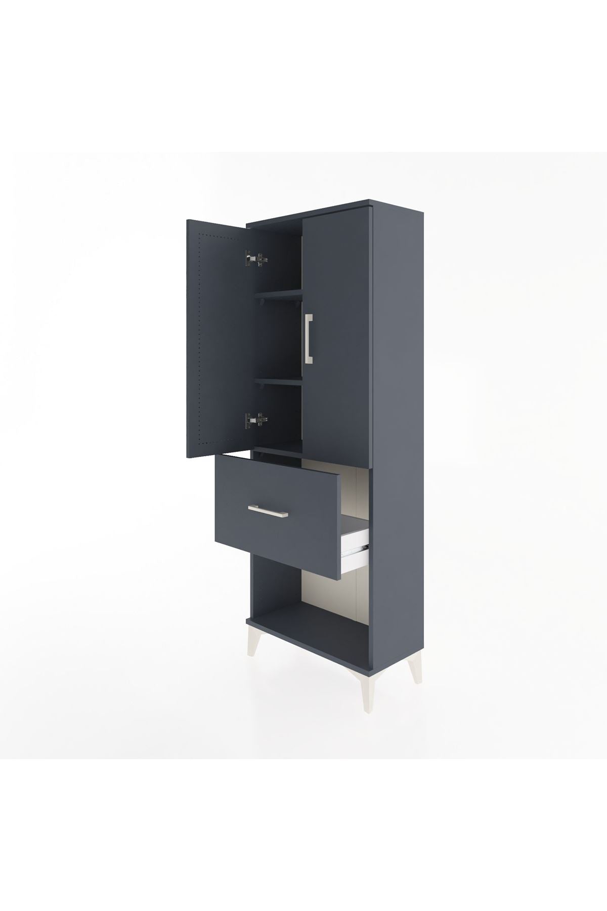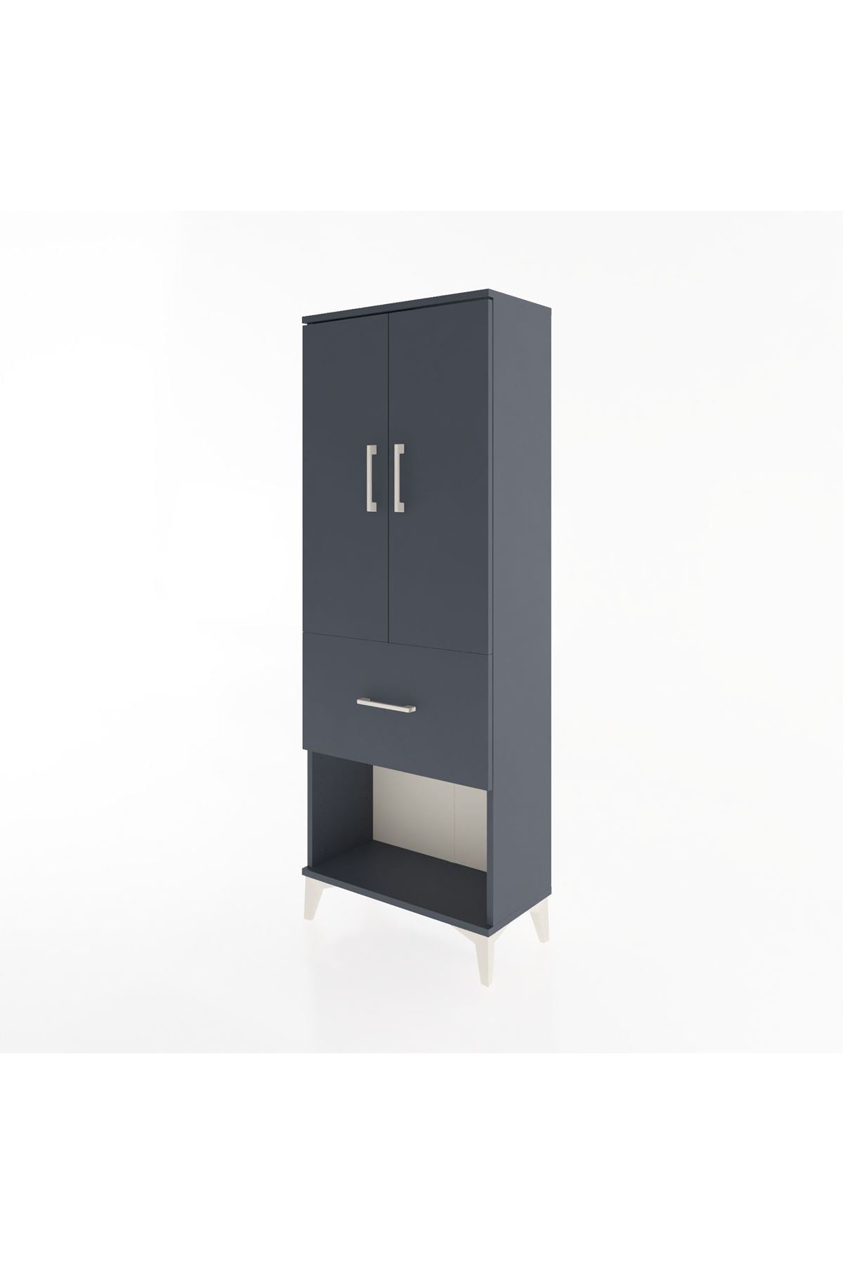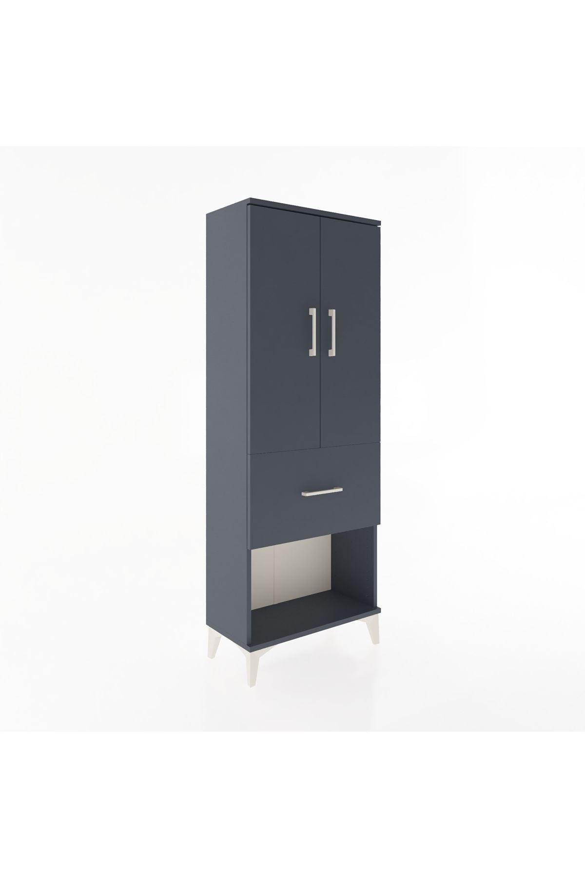 Arges Dolap 3 Raflı Tek Çekmeceli 2 Kapaklı 60x30x163 Antrasit-Antrasit