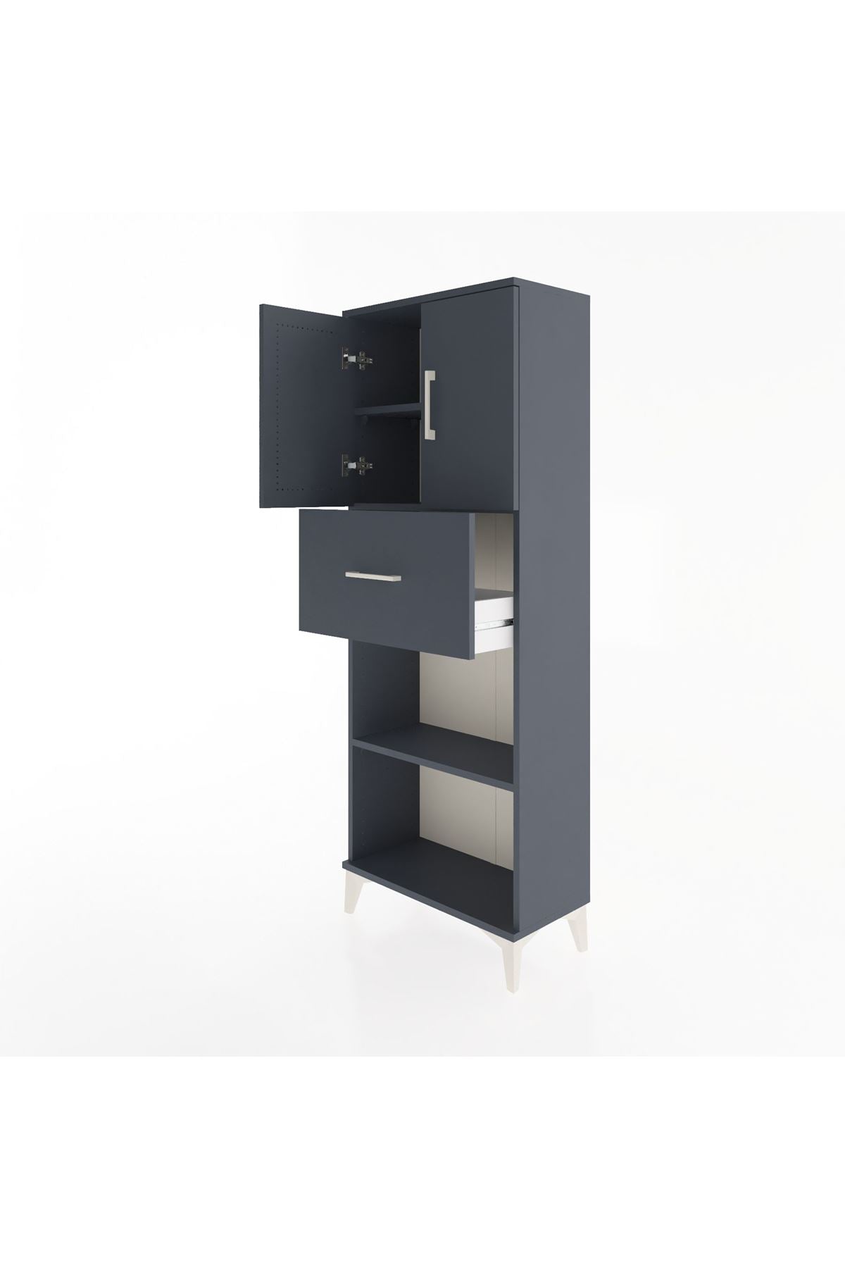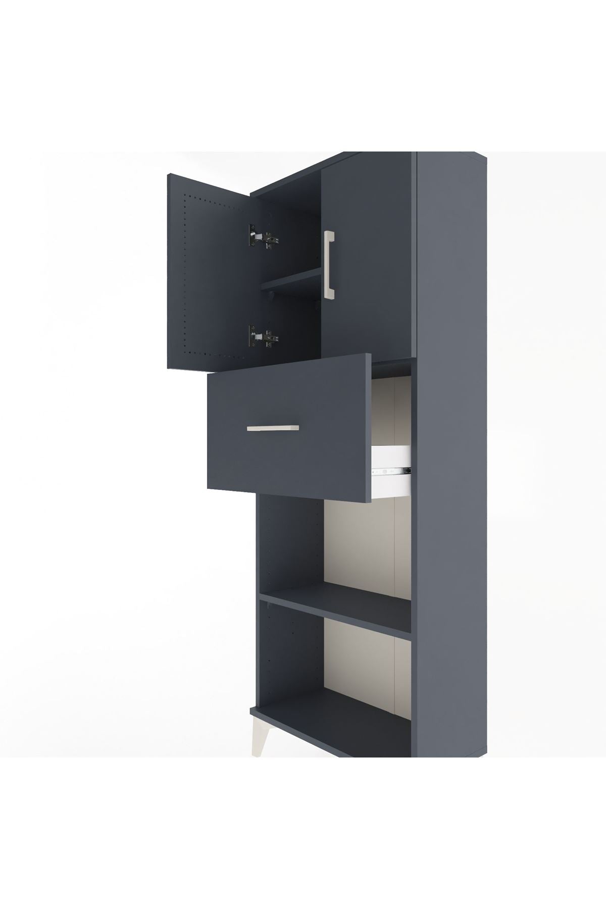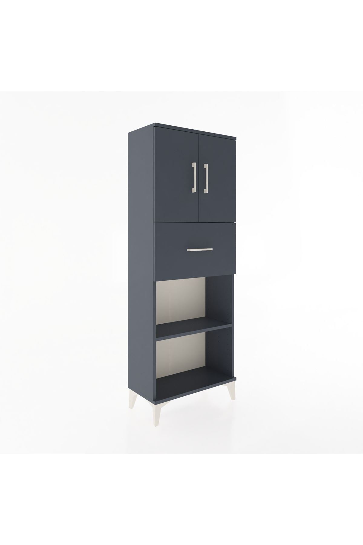 Arges Dolap 3 Raflı Tek Çekmeceli 2 Kapaklı 60x30x163 Antrasit-Antrasit
