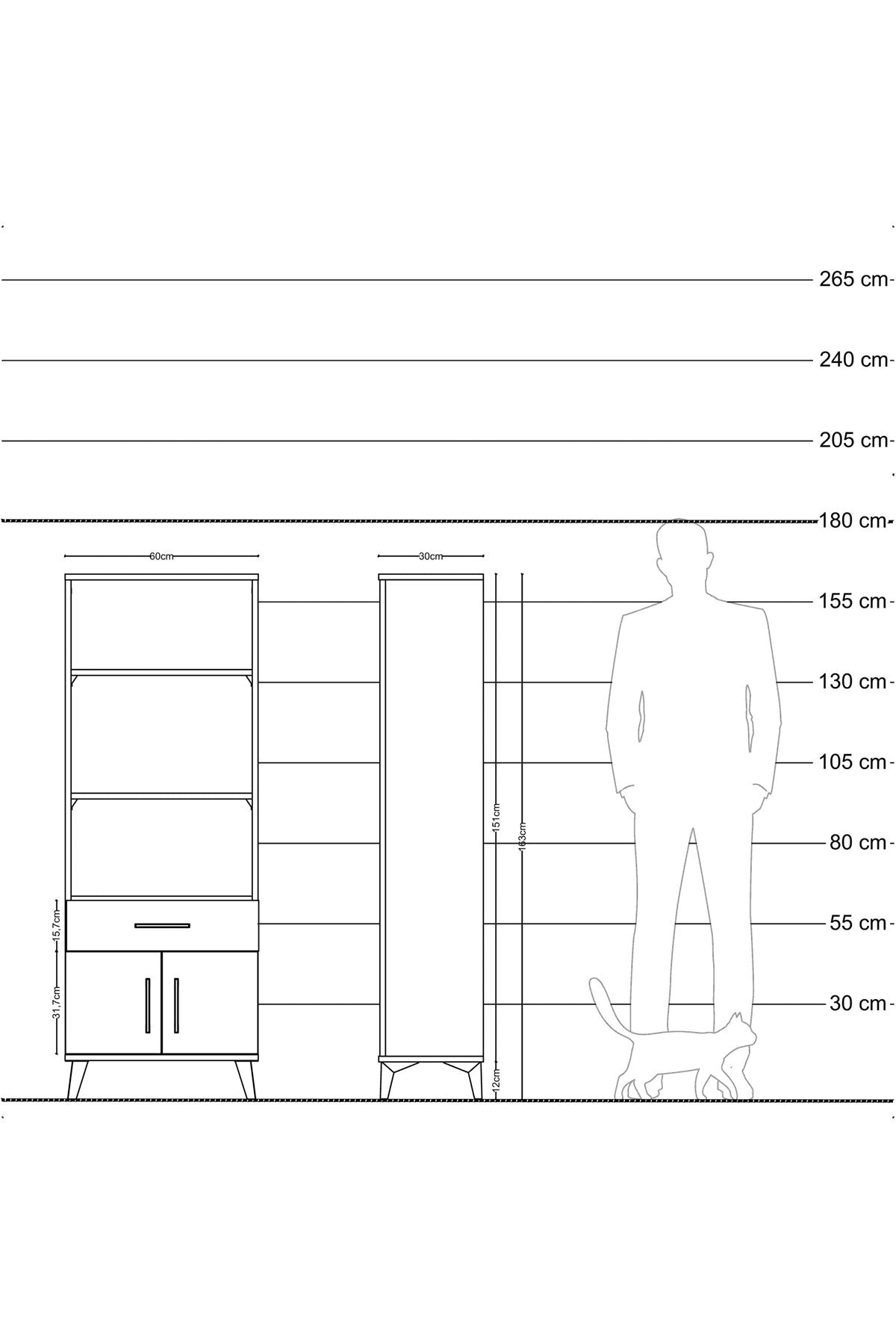 Arges Dolap 3 Raflı Tek Çekmeceli 2 Kapaklı 60x30x163 Aytaşı-Aytaşı