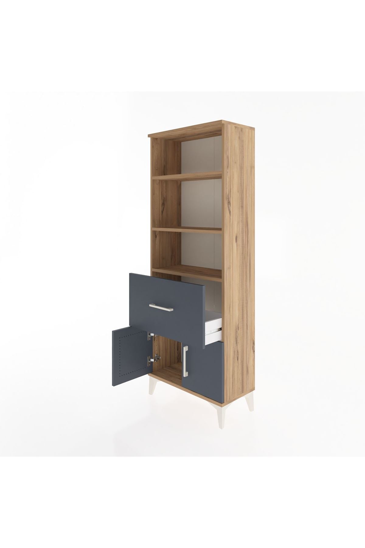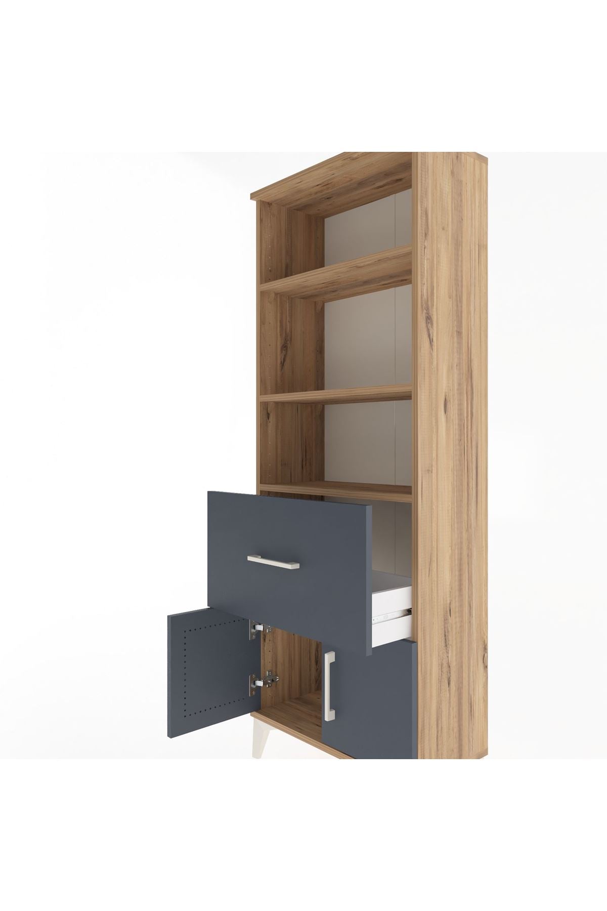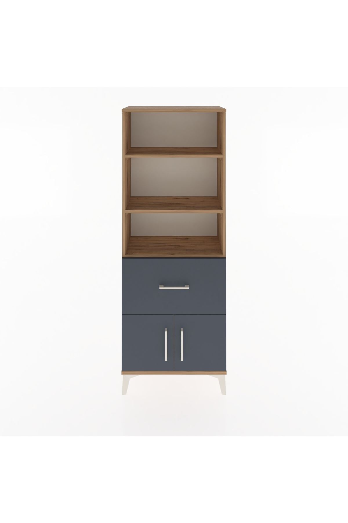 Arges Dolap 3 Raflı Tek Çekmeceli 2 Kapaklı 60x30x163 Çam-Antrasit